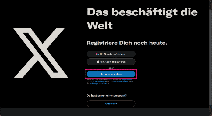 - Ă–ffnen Sie die Website von X und klicken Sie dort auf "Account erstellen".