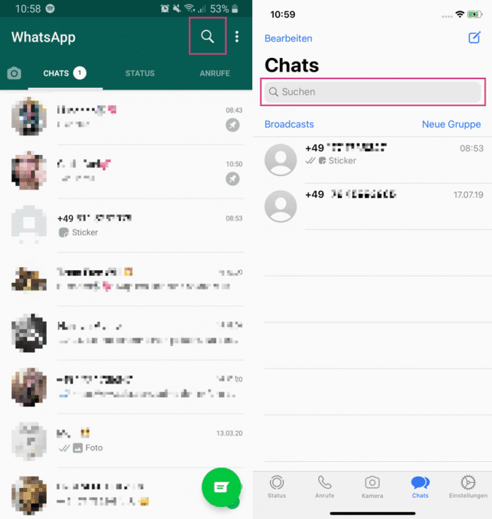 Einzelne Gruppen können in Ihren ganzen Chatverläufen in WhatsApp schnell untergehen. Mit der integrierten Suche können Sie bestimmte Gruppe aber wiederfinden, ohne lange zu suchen: