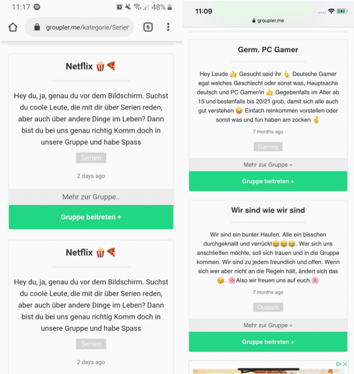 Auf der Webseite Groupler können WhatsApp-Nutzer ihre öffentlichen Gruppen teilen. Dort können Sie in verschiedenen Kategorien diverse Gruppen durchstöbern und ihnen beitreten: