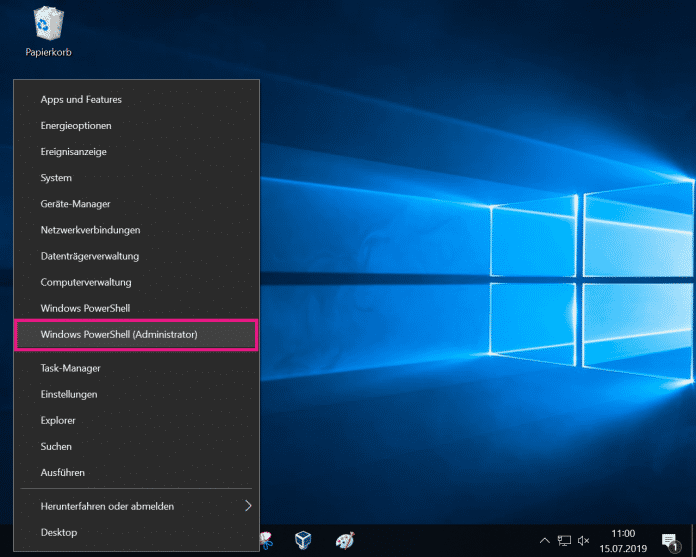 - Machen Sie einen Rechtsklick auf das Windows-Logo und wählen Sie "Windows PowerShell (Administrator)".