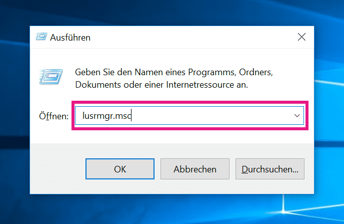 - DrĂĽcken Sie [Win] + [R] und geben Sie "lusrmgr.msc" ein.