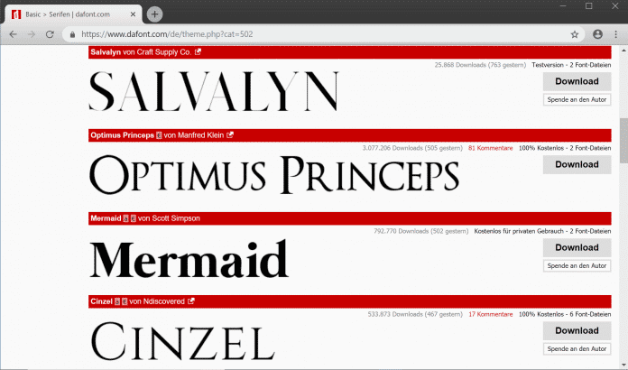- Laden Sie sich ein Font-Paket herunter, zum Beispiel auf dafont.com.