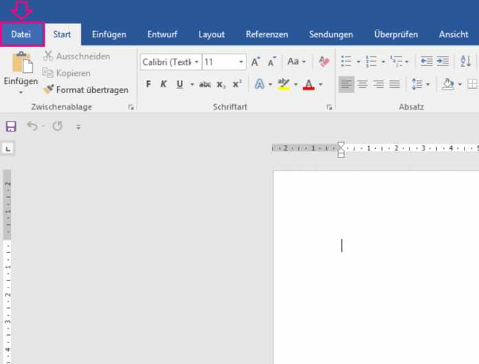 - Ă–ffnen Sie ein Dokument in Word und klicken Sie oben auf die Registerkarte "Datei".