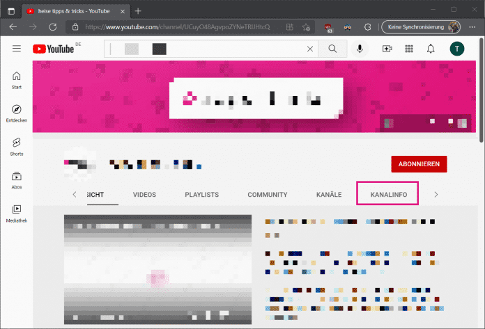 - Öffnen Sie auf der YouTube-Webseite den Kanal, den Sie melden möchten, und klicken Sie unter der Kanalüberschrift auf "Kanalinfo".