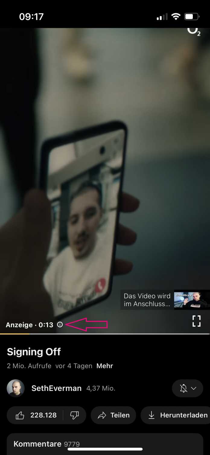 - Tippen Sie in der unteren linken Ecke der entsprechenden Werbeanzeige auf das kleine i, das Sie neben der Zeitangabe der Anzeige finden. FĂĽr Werbung auĂźerhalb eines Videos, zum Beispiel in Ihrem Feed, tippen Sie auf das Drei-Punkt-MenĂĽ unten rechts.