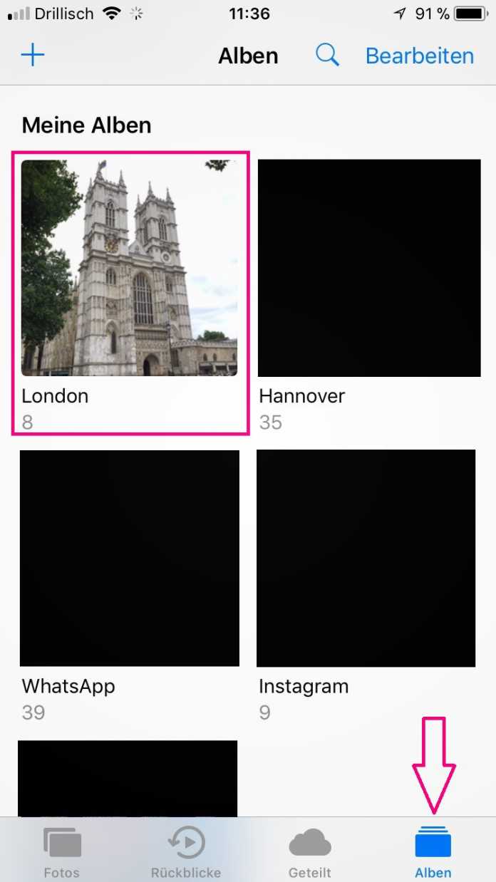 - Öffnen Sie die Fotos-App, gehen Sie in ein Album und tippen Sie auf "Auswählen".