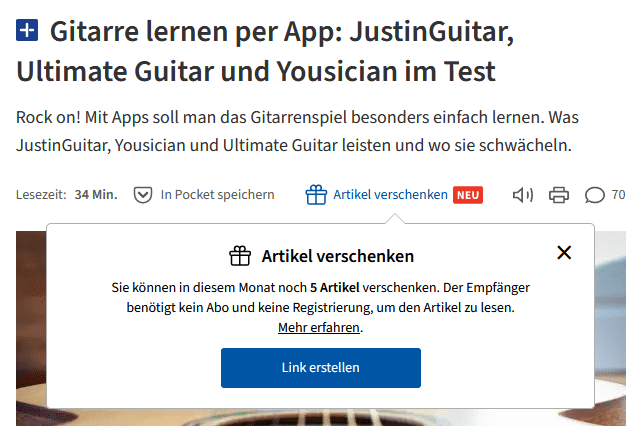 Aktuell können Sie fünf Artikel pro Monat verschenken. Wenn das Kontingent aufgebraucht ist, brauchen Sie nichts tun. Das Kontingent füllt sich beim nächsten Wechsel des Kalendermonats automatisch wieder auf.