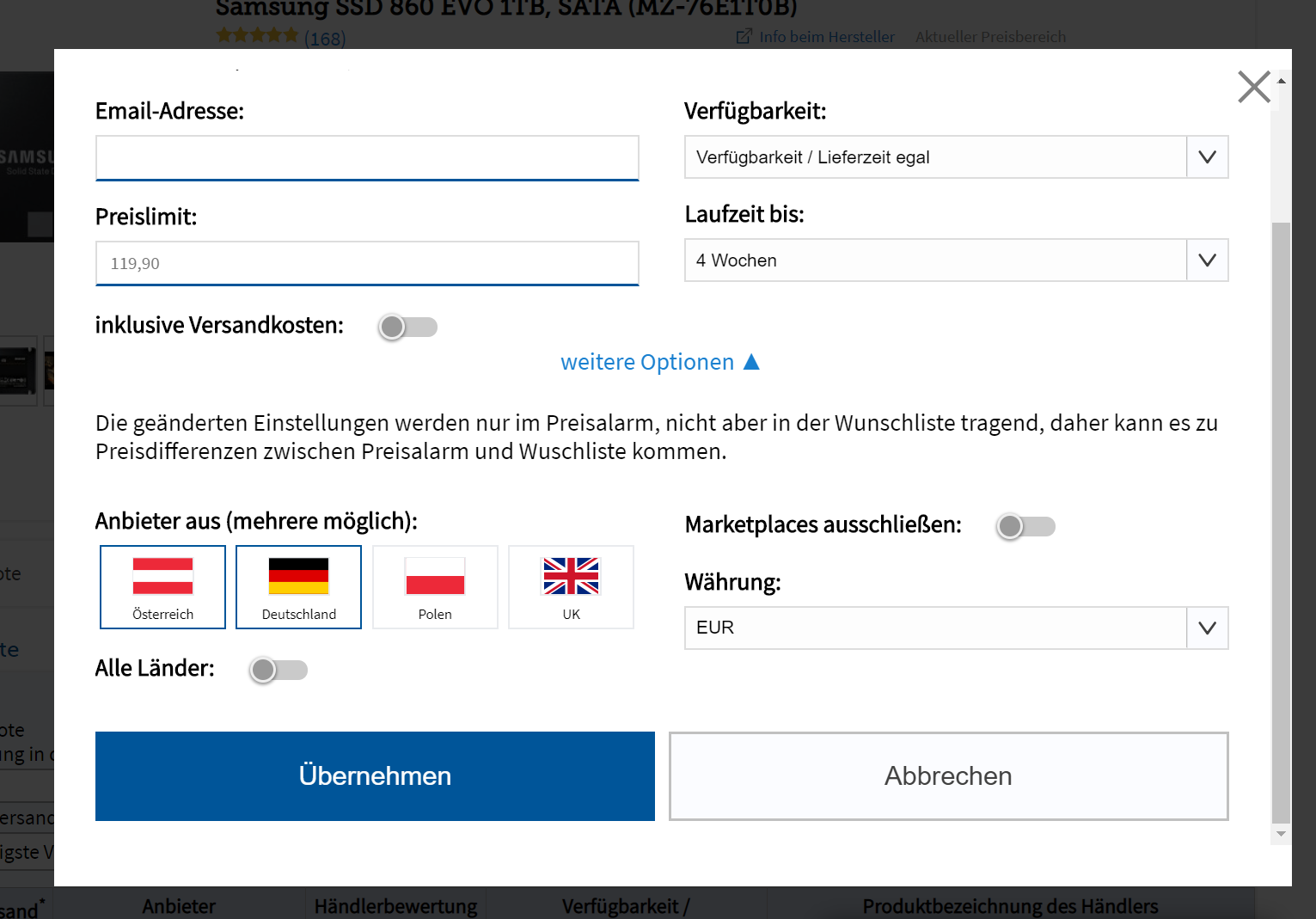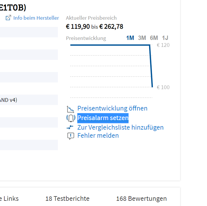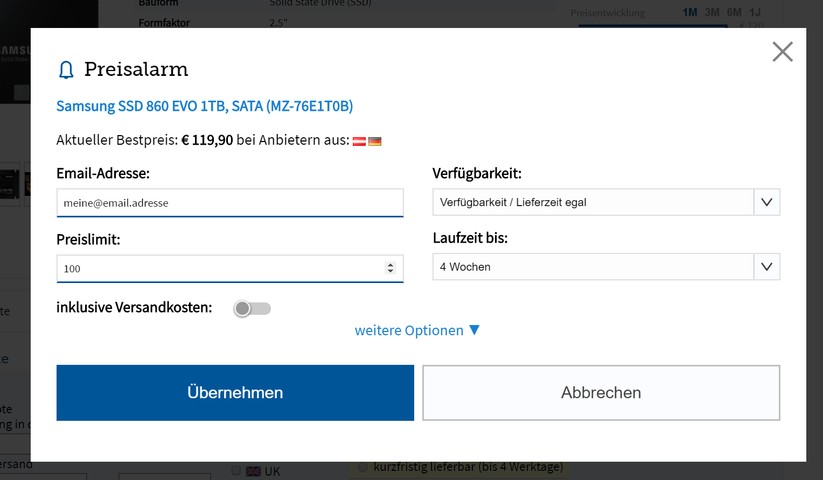 Mit unserem Artikel kann jeder einfach ein passendes Gerät finden. Wer dagegen ein spezielles Produkt im Auge hat, dem empfehlen wir das Setzen eins Preisalarms. Der informiert automatisch, wenn der Fernseher unter einen vorher definierten Preis fällt. Unsere Bilderstrecke zeigt, wie das geht.