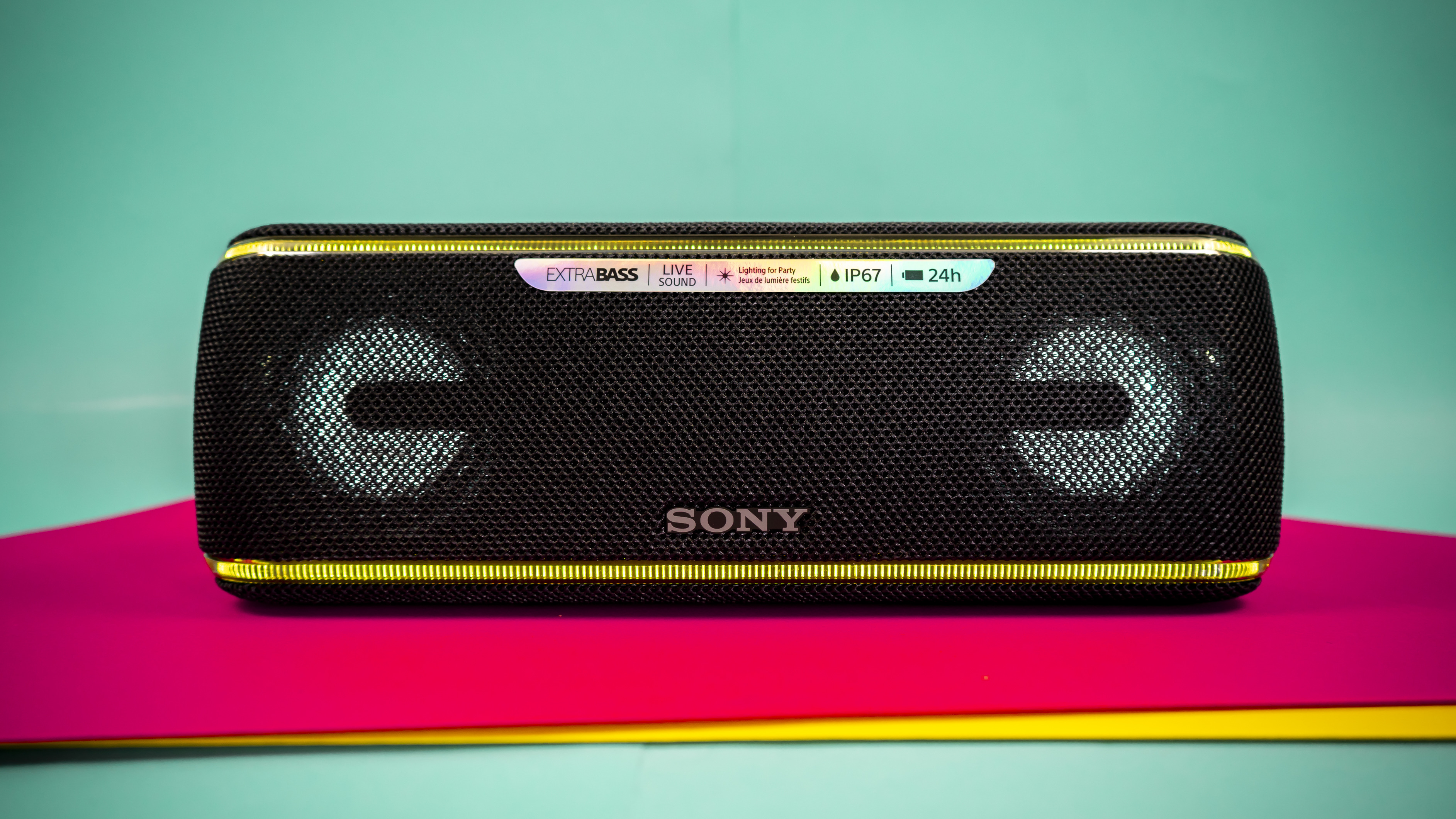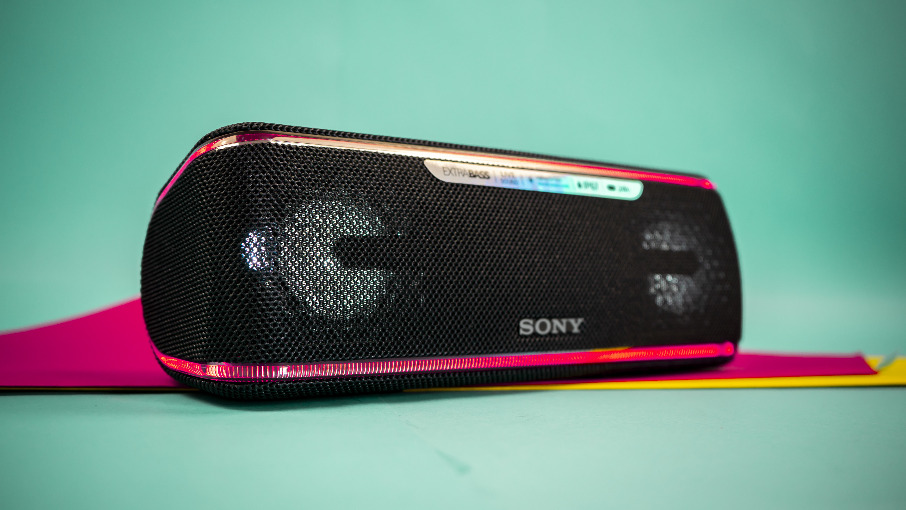 Sonys SRS-XB41 ist besonders großzügig ausgestattet und verfügt über fünf unbeleuchtete Buttons zur Steuerung der Lautstärke und der Musikauswahl. Außerdem können Nutzer sich die Akkulaufzeit ansagen lassen und den Lautsprecher mit bis zu 99 weiteren identischen Geräten koppeln. Das funktioniert übrigens unter anderem auch beim JBL Flip 4 und beim Ultimate Ears Boom 3 (hier sogar mit bis zu 150 Lautsprechern insgesamt).