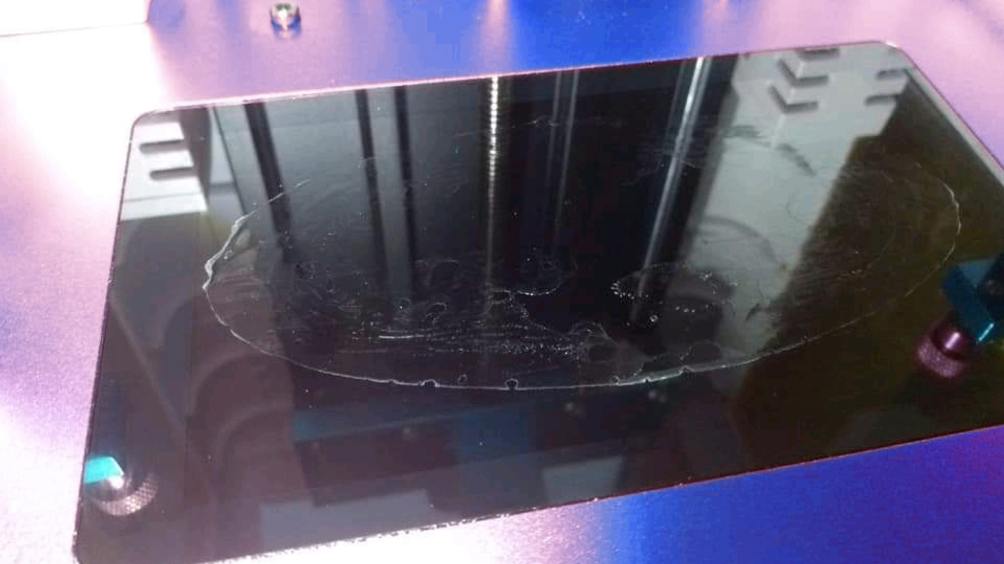 Sollte flüssiges Harz auf das Druckdisplay gelangen, sollte man dieses manuell belichten und aushärten. Die belichtete Schicht zu Entfernen klappt nach unserer Erfahrung mit einem Schaber für Glaskeramik-Kochfelder. Dieser sollte allerdings nur sehr flach angesetzt werden, um Beschädigungen zu vermeiden. Meist reicht zum Abkratzen auch eine alte Kreditkarte oder der Kunststoffspachtel, welcher zum Lieferumfang der Drucker gehört.