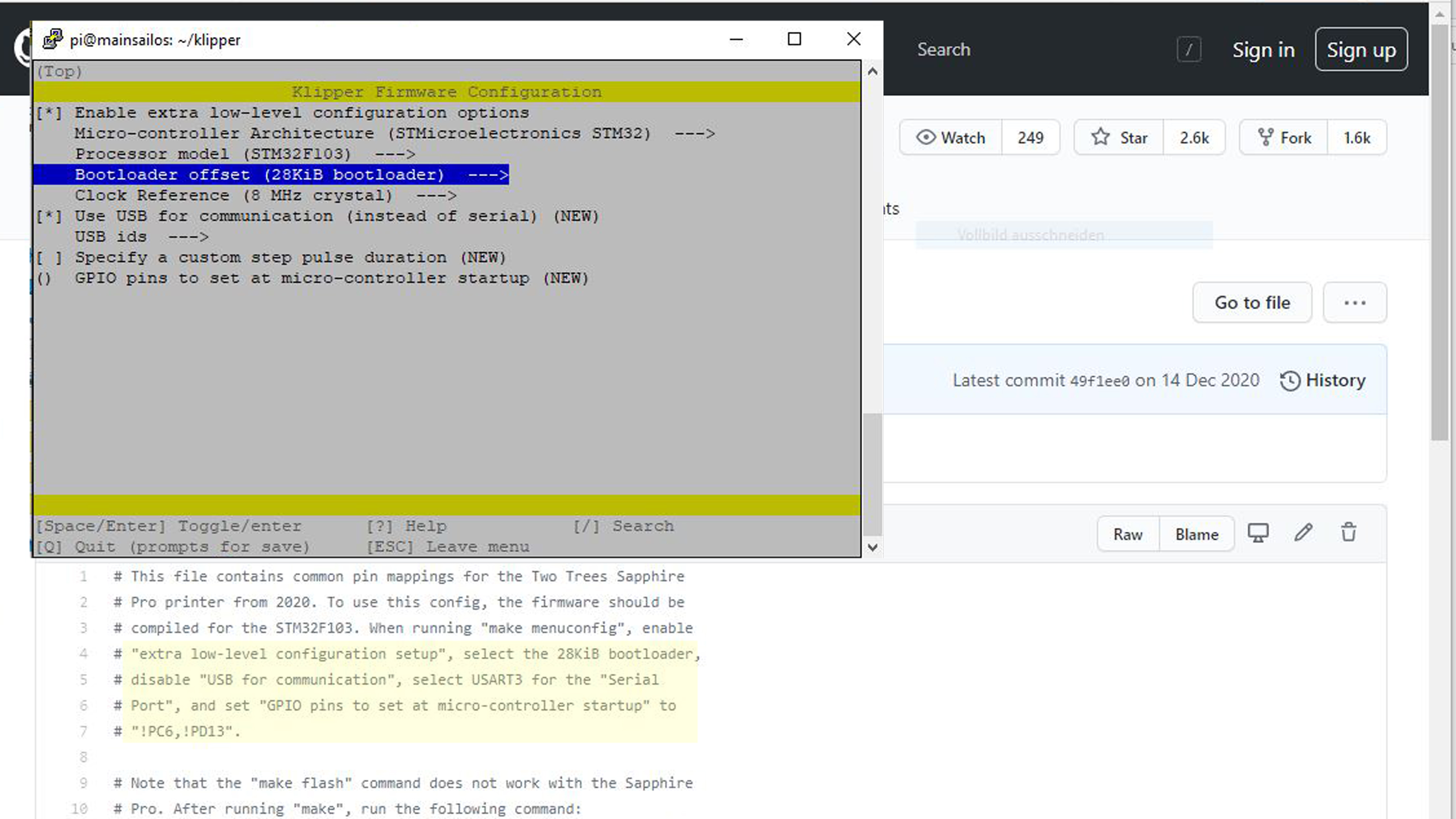 Für diese Anleitung haben wir den FDM-Drucker Sapphire Pro von TwoTrees (Testbericht) umgerüstet. Letztlich funktioniert die Anleitung aber auch mit Geräten wie dem Ender 3 (Ratgeber), Tronxy X5 SA Pro (Testbericht) oder dem Anet A8 (Testbericht A8 Plus). Lediglich die Einstellungen, welche später unter „make menuconfig“ und in der „Printer.cfg“ Datei getätigt werden, sind nicht universell anwendbar und müssen für jeden Drucker, besser gesagt für jedes Mainboard, separat in Erfahrung gebracht werden! Konkrete Hilfe bei der Umrüstung eines anderen Drucker-Modells gibt es in der jeweiligen Konfig-Datei. Diese sind hier bei Github zu finden. Der Rest dieser Installation ist universell anwendbar.