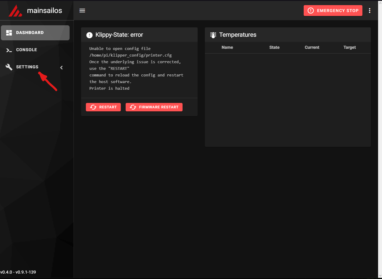 Grundsätzlich gilt: Nach jeder Änderung von Einstellungen innerhalb der Dateien „printer.cfg“ oder „mainsail.cfg“ muss ein „Firmware Restart“ erfolgen. Dies erfolgt durch einen Klick auf „SAVE & RESTART“.