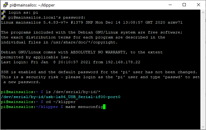 Im Fall des Sapphire Pros mit dem Mainboard MKS Robin Nano muss die Firmware Datei noch mithilfe eines Scripts bearbeitet werden. Dazu wird in Putty folgender Befehl eingetragen und mit ENTER bestätigt: