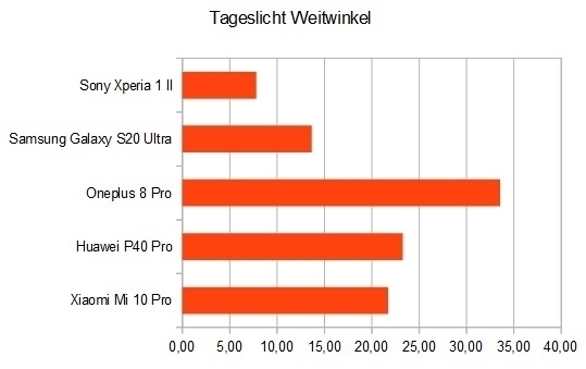 Auch bei Weitwinkelaufnahmen sehen unsere Leser Oneplus an der Spitze, Sony landet unverändert auf dem letzten Platz. Das passt insofern, dass das Oneplus-Modell zumindest die Weitwinkellinse mit der höchsten Auflösung hat (48 Megapixel). Das Huawei P40 Pro+ (Testbericht) mit 40 Megapixel schneidet dieses Mal am zweitbesten ab, Verlierer ist überraschend Samsungs S20 Ultra, das wir zuvor weiter vorn gesehen hätten. Erneut gebührt Oneplus Lob und Anerkennung für die kontinuierliche Weiterentwicklung der Kamers seiner Smartphones, die zu Beginn eher mittelmäßig waren, jetzt aber zumindest in den Augen unserer Leser erstklassig.