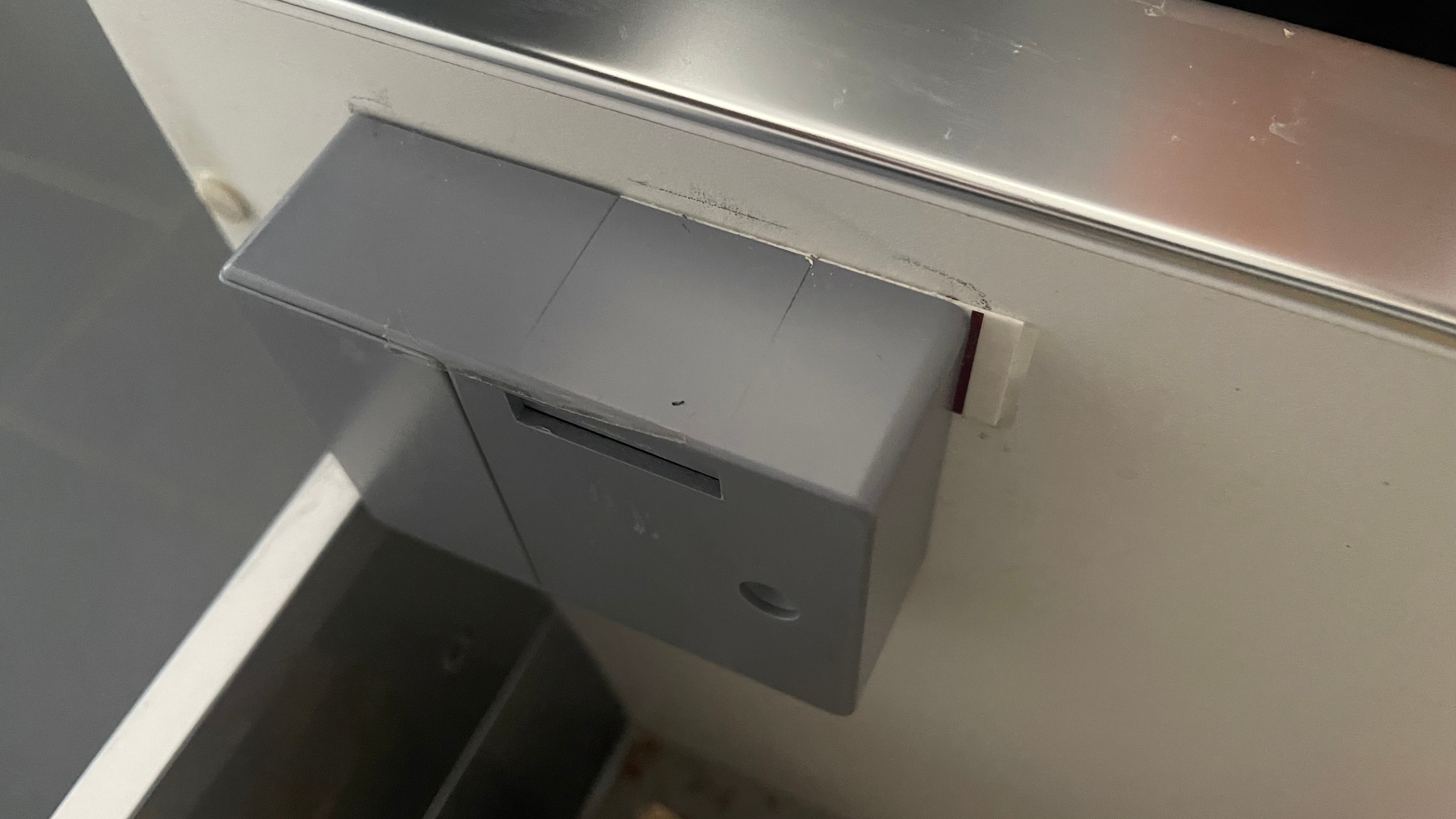 Der Einbau kann zur Geduldsprobe werden. Die ideale Befestigung, bei der man auch problemlos an Elektronikkästchen und Riegel samt deren Schrauben kommt, lässt sich nicht immer umsetzen. Bei der Süßigkeitenschublade des Autors war die Befestigung des Riegels nur innen an der Decke möglich; die richtige Position und den richtigen Abstand zu finden, gleicht einer Sisyphusaufgabe. Tatsächlich sind dafür aber Tesa Powerstrips oder andere Montage-Klebepads perfekt: Man kann die Komponenten zunächst platzieren und testen und dann mit Schrauben fixieren, wenn alles passt.