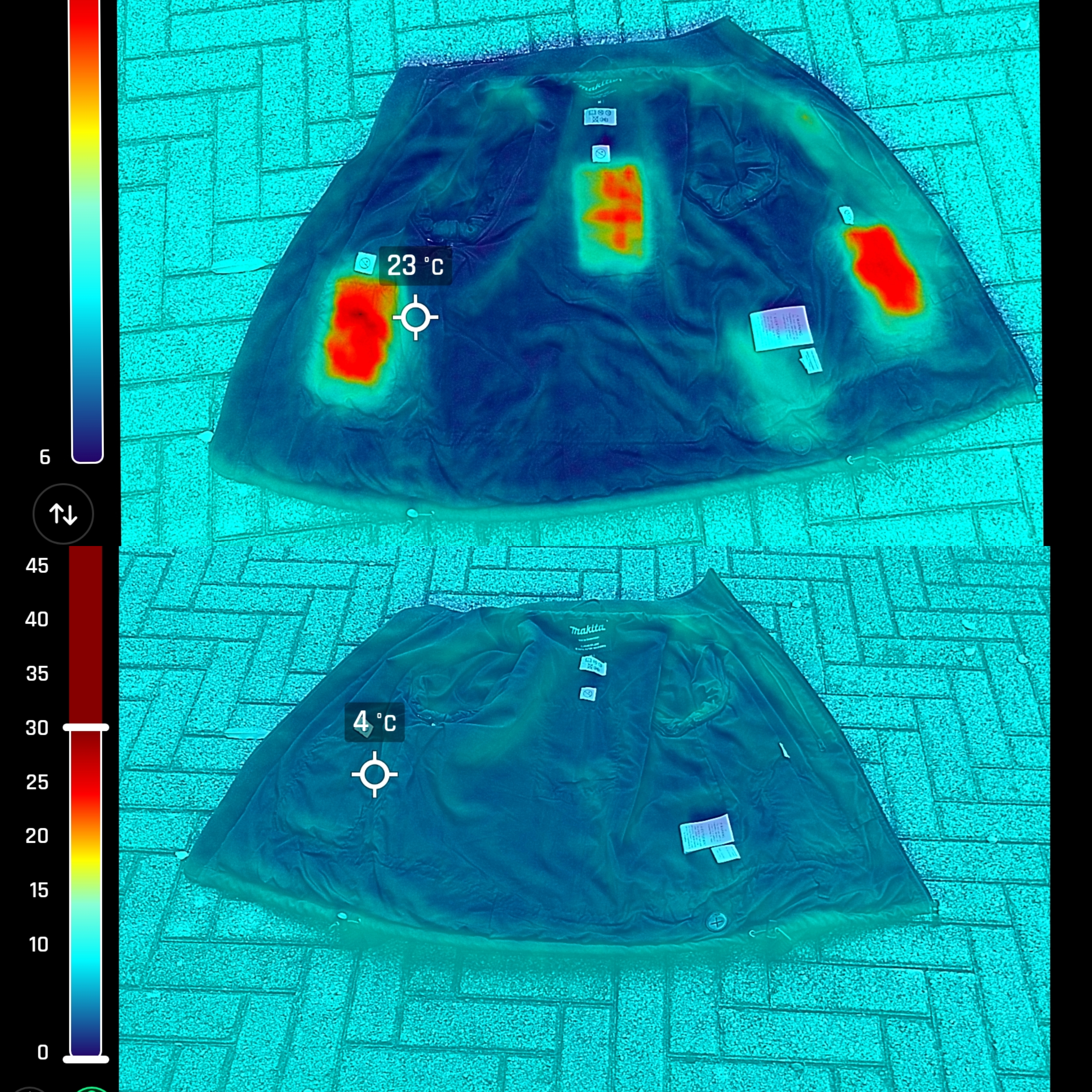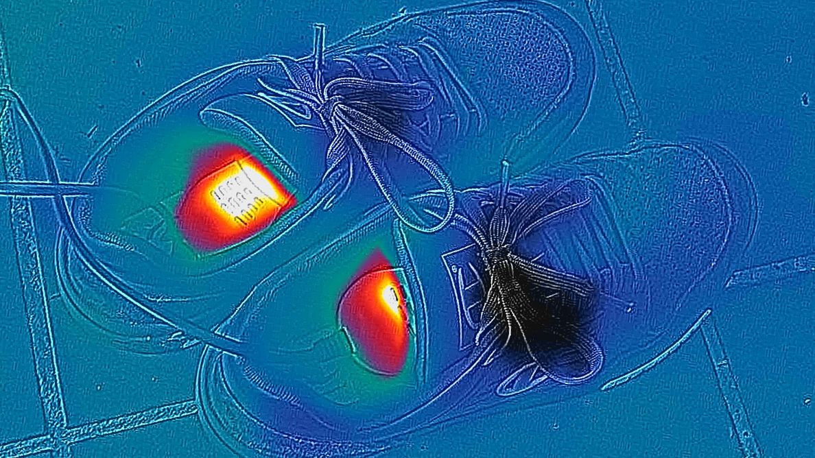 Der Blick auf das Wärmebild zeigt dann auch das Problem. Das Heizelement wärmt sich weder genügend auf noch, ist es groß genug. Ein großflächigeres Heizelement mit mehr Leistung wäre die Lösung. Vernünftige Marken-Heizeinlagen und beheizte Socken erwärmen sich deutlich besser, die Preise für ausreichend starke Modelle beginnen allerdings erst ab etwa 50 Euro, teilweise sogar schon mit App.