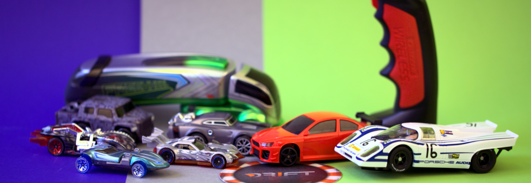 Overdrive (Testbericht) hat vor ein paar Jahren einen unglaublichen Hype ausgelöst. Endlich ein Konkurrent zu Slot-Bahnen, der die Vorteile von Smartphones und Apps nutzt. Die Fahrzeuge können mehr als nur ihre Kurven drehen, über die Apps kann man Waffen oder Booster einbauen und abfeuern. Damit wird das eigene Fahrzeug schneller oder der Gegner langsamer. Die Streckenmatten halten magnetisch und lassen sich so schnell und einfach verlegen. Vor dem Start müssen die Fahrzeuge nur einmal die Strecke abfahren, anlernen, dann kann es losgehen.