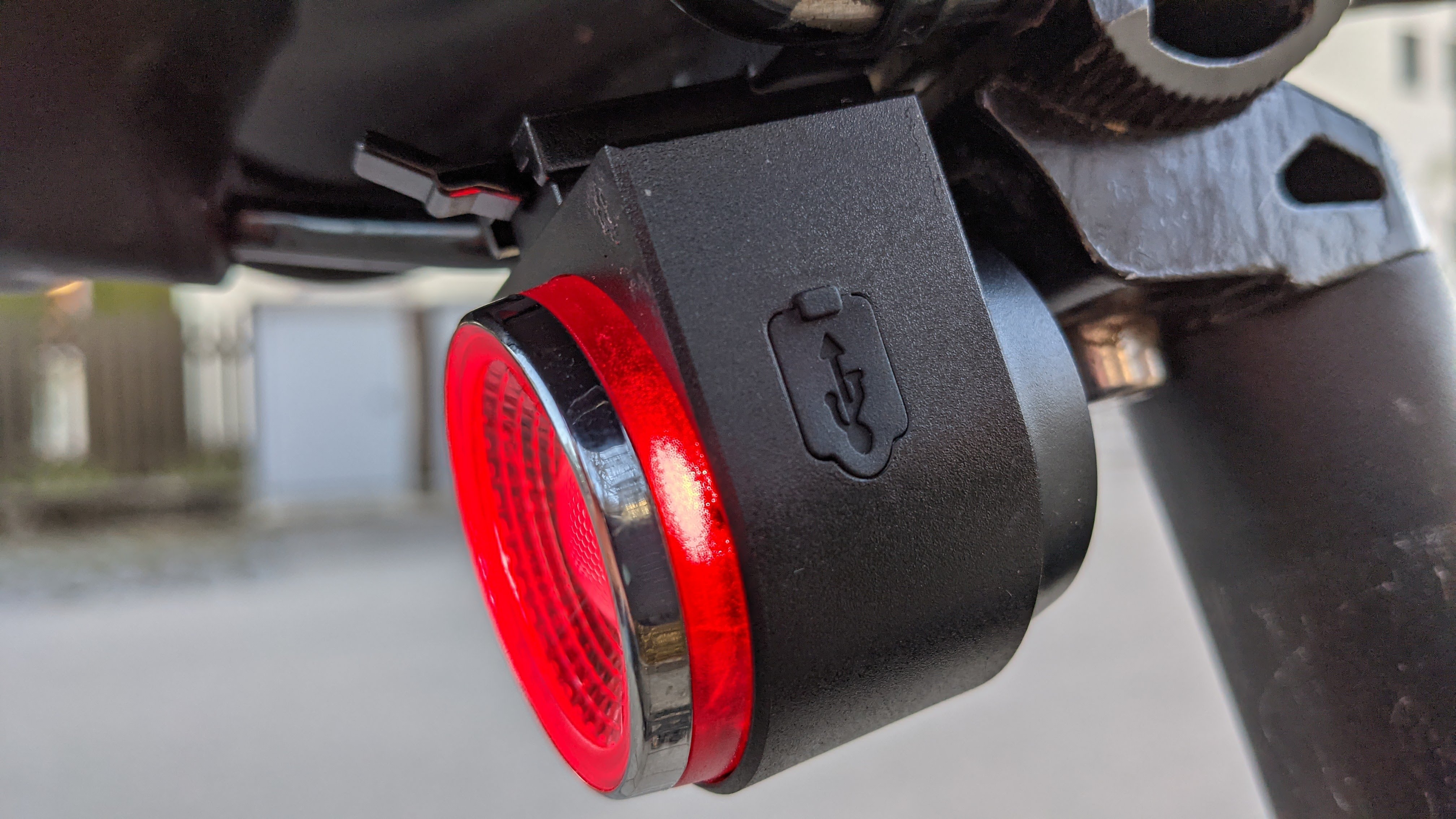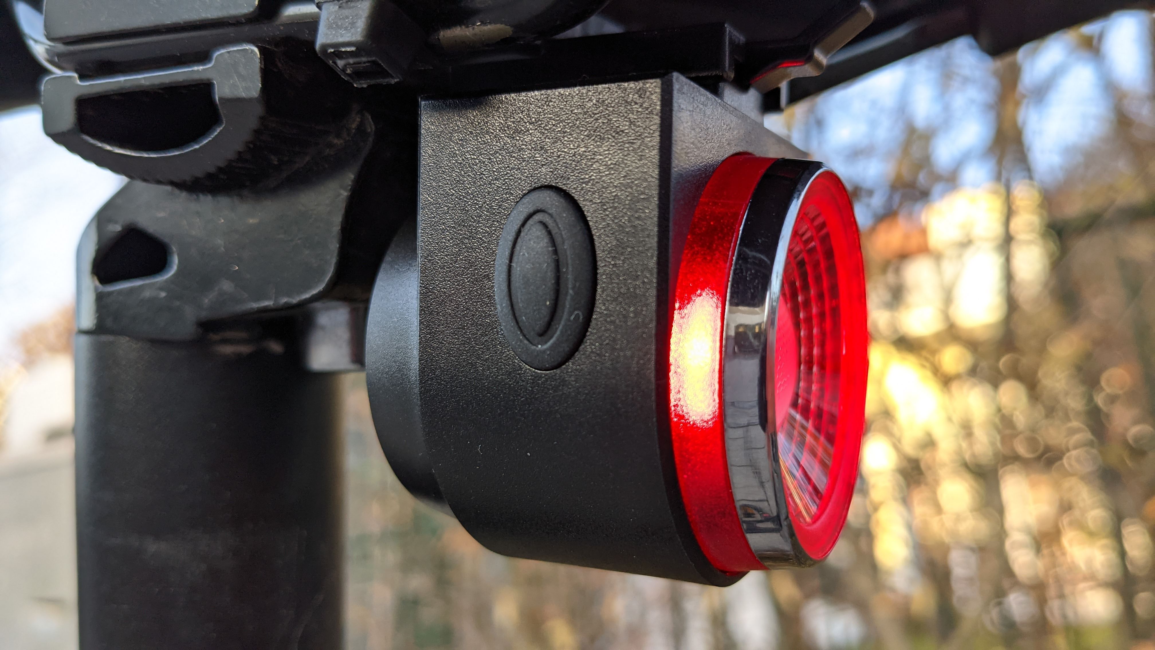 Eingeschaltet wird sie wahlweise über die mitgelieferte Fernbedienung, für die eine Halterung für die Lenkstange beiliegt, oder direkt am Rücklicht über einen Taster. Von Blinken über Pulsieren (beides in Deutschland nicht erlaubt) bis zum dauerhaften Licht schaltet der Nutzer dort zwischen vier Leuchtmodi hin und her. Das Licht ist außergewöhnlich hell. Schaut man genau hin, entdeckt man die dafür verantwortlichen sechs LEDs im Inneren der Rückleuchte. Ihr Akku hält in unseren Fall bei täglicher etwa 1,5-stündiger Nutzung mit dauerhaftem Leuchten eine Woche.