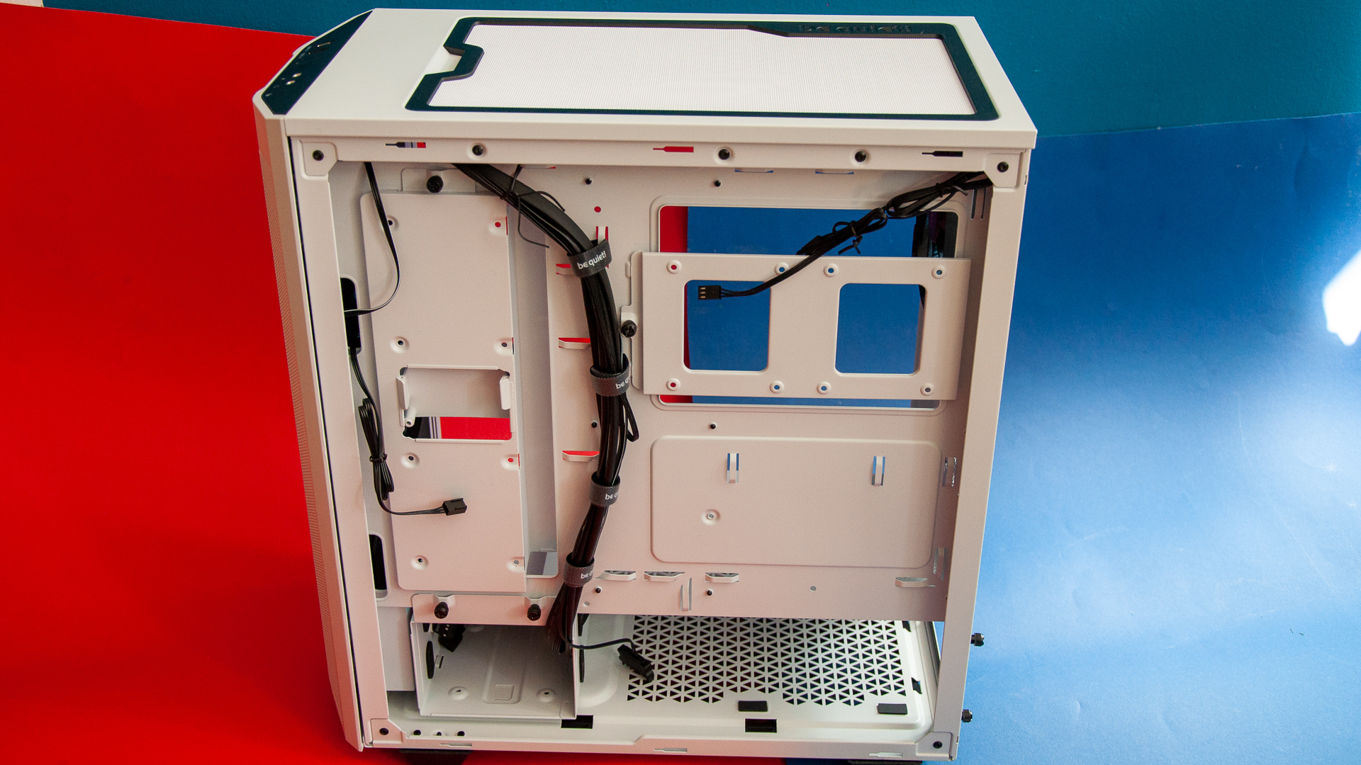 Kabelsalat ist nicht nur hässlich, er bremst auch den Luftstrom oder leitet ihn in ungewollte Richtungen. Die meisten hochwertigeren Gehäuse, gerade solche mit einer Seitenwand aus Glas, bieten inzwischen Kabelkanäle und Durchlässe, beispielsweise über der CPU für die Stromversorgung. So kann man die Kabel hinter dem Mainboard verstauen, damit sie aus dem Weg sind und nicht das Erscheinungsbild trüben.