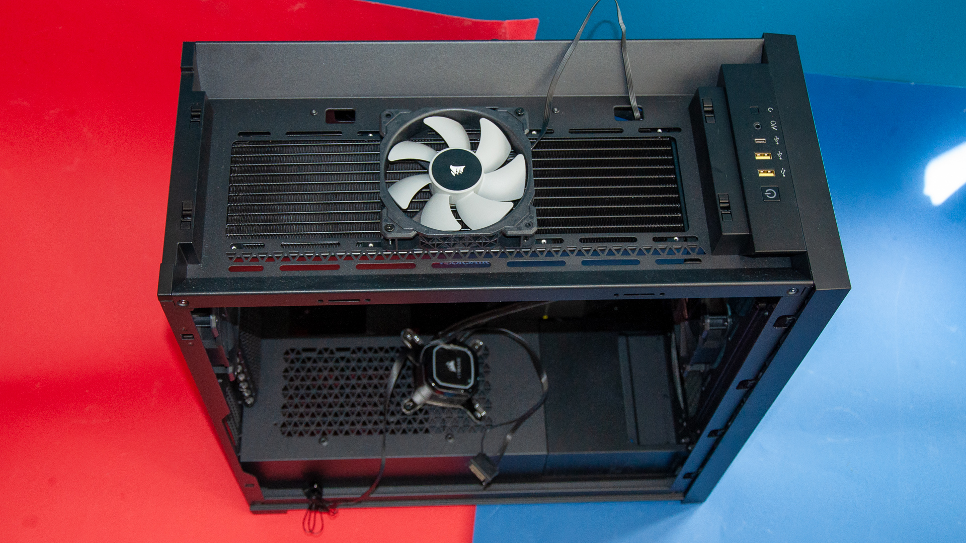 Trickreicher wird es bei der Kühlung, konkret dem CPU-Kühler. Die meisten High-End-Lüfter fallen aus, sie benötigen zu viel Platz. In unserem Testsystem etwa sitzt das Netzteil direkt über der CPU, darunter ist kein Platz für einen klassischen Tower-Kühler. Wer auf eine Luftkühlung setzt, der kann sich einen Top-Blow-Kühler ansehen, dort gibt es kompakte Produkte, bei denen der Lüfter fast direkt auf der CPU sitzt. Die meisten der kompakten PC-Gehäuse verfügen über genügend Platz für den Radiator und einen Lüfter und gerade auf knappem Raum schafft die Wasserkühlung einen deutlich besseren Wärmetransport im Vergleich zum Luftkühler.