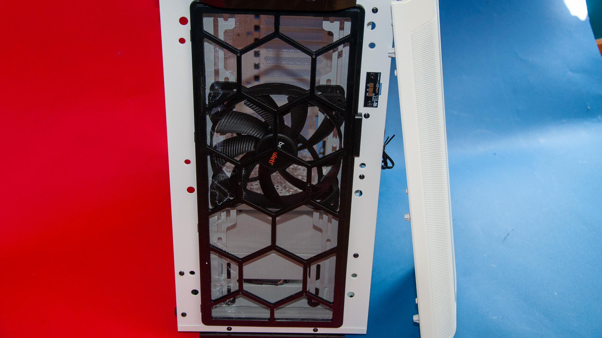 Der Festplattenkäfig an der Front des IT-6865 unterstreicht den Einsatzbereich Büro, hier ist auch Platz für ein optisches Laufwerk. An der Front ist sogar eine Aussparung für ein 2,5-Zoll-Laufwerk, wie es früher für Disketten oder Zip-Disks genutzt wurde. Corsair und Be Quiet verzichten auf den Laufwerkkäfig an der Front und lassen hier lieber Platz für den sehr bequemen Einbau von jeweils maximal drei 120-mm-Lüfter.
