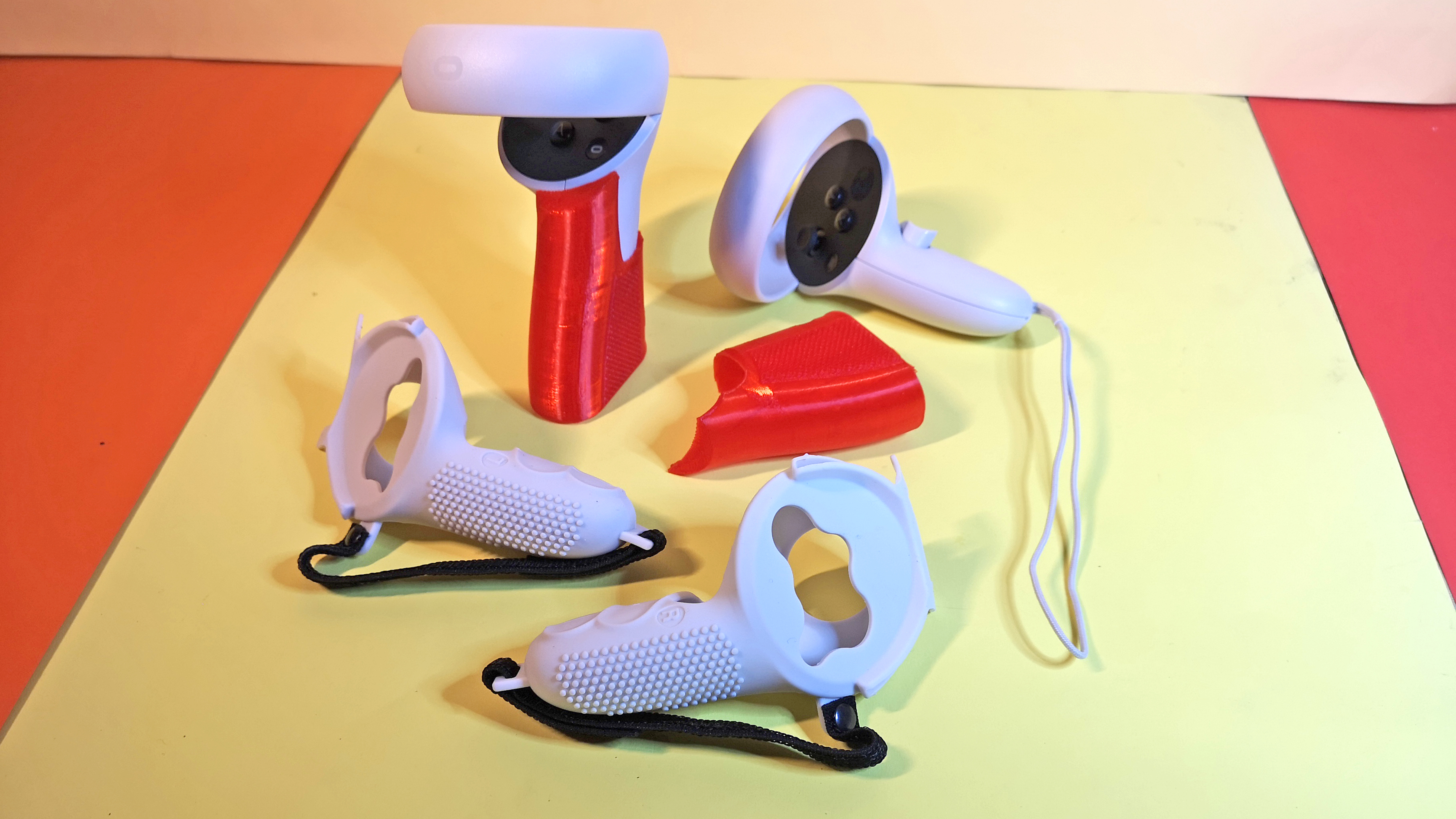 Für die Controller der Quest 2 gibt es ebenfalls sehr viel verschiedenes Zubehör. Hier fallen die zahllosen Schutzhüllen in teils sehr auffälligen Designs auf. Diese gibt es für den kompletten Controller, für Teile der Geräte, mit oder ohne Schutzband. Günstige Silikonabdeckungen gibt es ab fünf Euro. Der Griffschutz vom Kiwi bietet zusätzlich Zugriff auf das Batteriefach und kostet 32 Euro. Solche Schutzhüllen sind häufig auch in den diversen Zubehör-Sets für die Quest 2 enthalten. In der Praxis schützen die Hüllen vor oberflächlichen Schäden und sorgen für besseren Halt. Leider passen die Controller so eingepackt dann aber nicht mehr in viele der Ladestationen oder Halterungen.