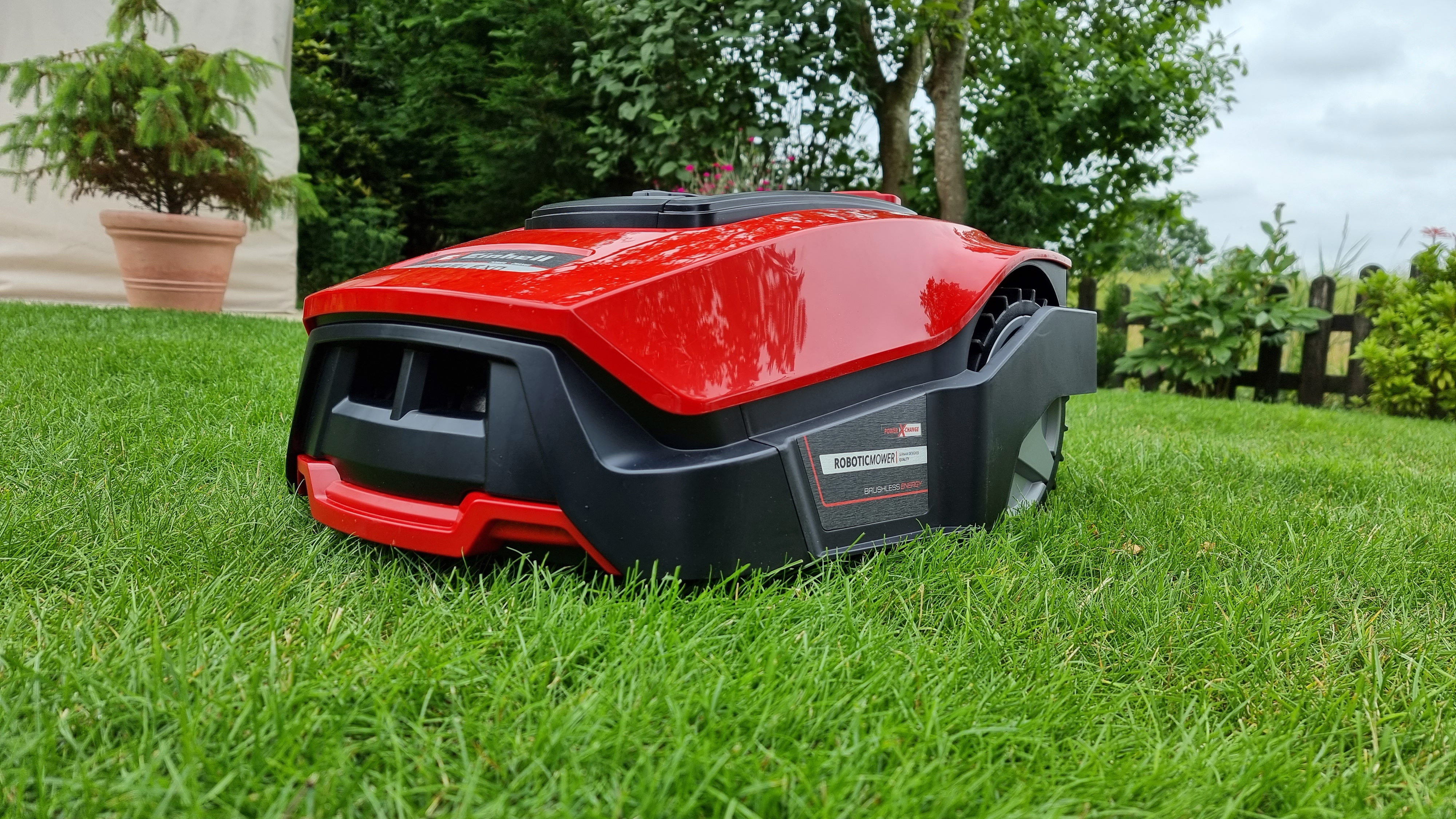 Wichtig, gerade in kleinen Gärten: die minimale Durchfahrtsbreite. Das erwähnte Begrenzungskabel wird nicht herstellerübergreifend immer im gleichen Abstand zu Hindernissen verlegt. So verlangt ein von uns ausprobierter AL-KO Robolinho 300e einen Abstand von mindestens 20 Zentimetern, der Einhell Freelexo 350 hingegen 30 Zentimeter. Im Umkehrschluss benötigt der Robolinho mindestens 40 Zentimeter Durchfahrtsbreite an einer Engstelle, der Einhell-Mäher 60 Zentimeter. Gerade bei kleinen Gärten kann das mit dem Freelexo wortwörtlich eng werden.