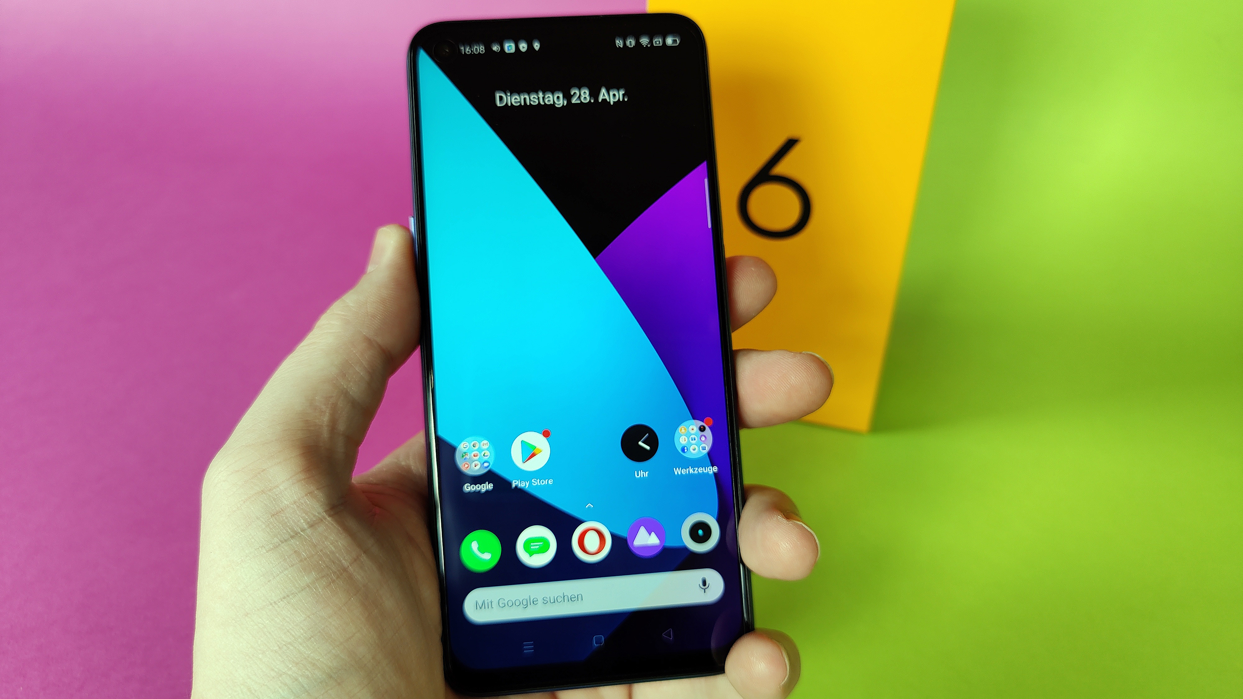 Das bestausgestattete Modell zum Realme-Start in Deutschland Ende April 2020 ist das Realme 6. Highlight des schon ab knapp 230 Euro (UVP) zu habenden Mittelklasse-Smartphones ist das 90-Hz-Display für flüssiges Scrolling und Gaming, das in dieser Preisklasse einzigartig ist. Es misst ebenfalls 6,5 Zoll, bietet jetzt aber 2400 × 1080 Pixel und somit etwas mehr als 400 PPI. Die Rahmen rings um den Screen sind noch einmal minimal geschrumpft, die Tropfen-Notch bleibt. Schutz für das Display bietet beim 6er-Modell von Realme das widerstandsfähige Corning Gorilla Glas 3.