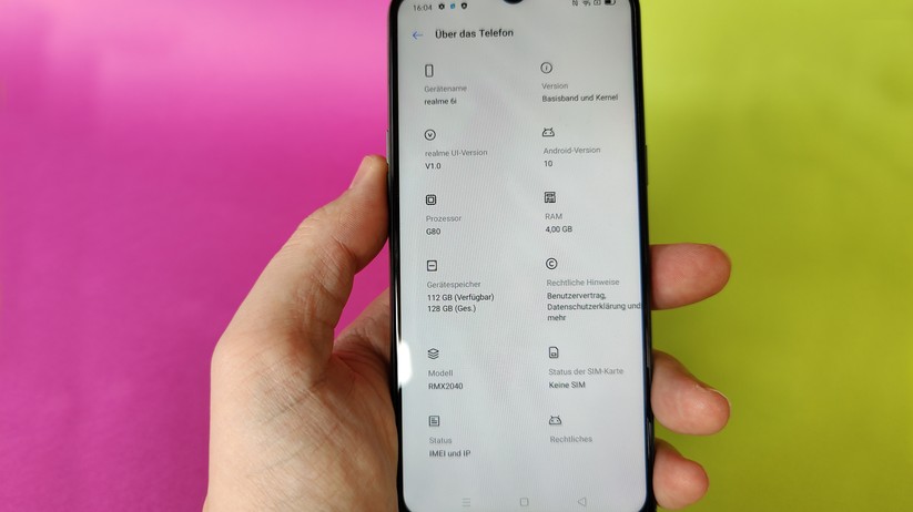 Neu sind hingegen NFC und USB Typ C, außerdem lässt sich der Akku nun mit 18 Watt schnellladen. Der Rest ist gleich. Optisch ähneln sich C3 und 6i nicht zuletzt wegen der gleichen Ausmaße sehr, Hauptunterschiede sind das erweiterte Kameramodul auf der Rückseite und die Farbgestaltung. Die nennt sich bei unserem Testgerät Tea Green, die Rückseite ist glatt mit streifenförmigem Lichtspiel, gefällt uns aber nicht. In Kombination mit mehr Hohlraum unter der Kunststoffrückseite wirkt das Realme 6i für unseren Geschmack klar weniger hochwertig, obwohl es objektiv betrachtet kaum Unterschied gibt. Technisch bietet das Modell wieder richtig viel Ausstattung für wenig Geld.