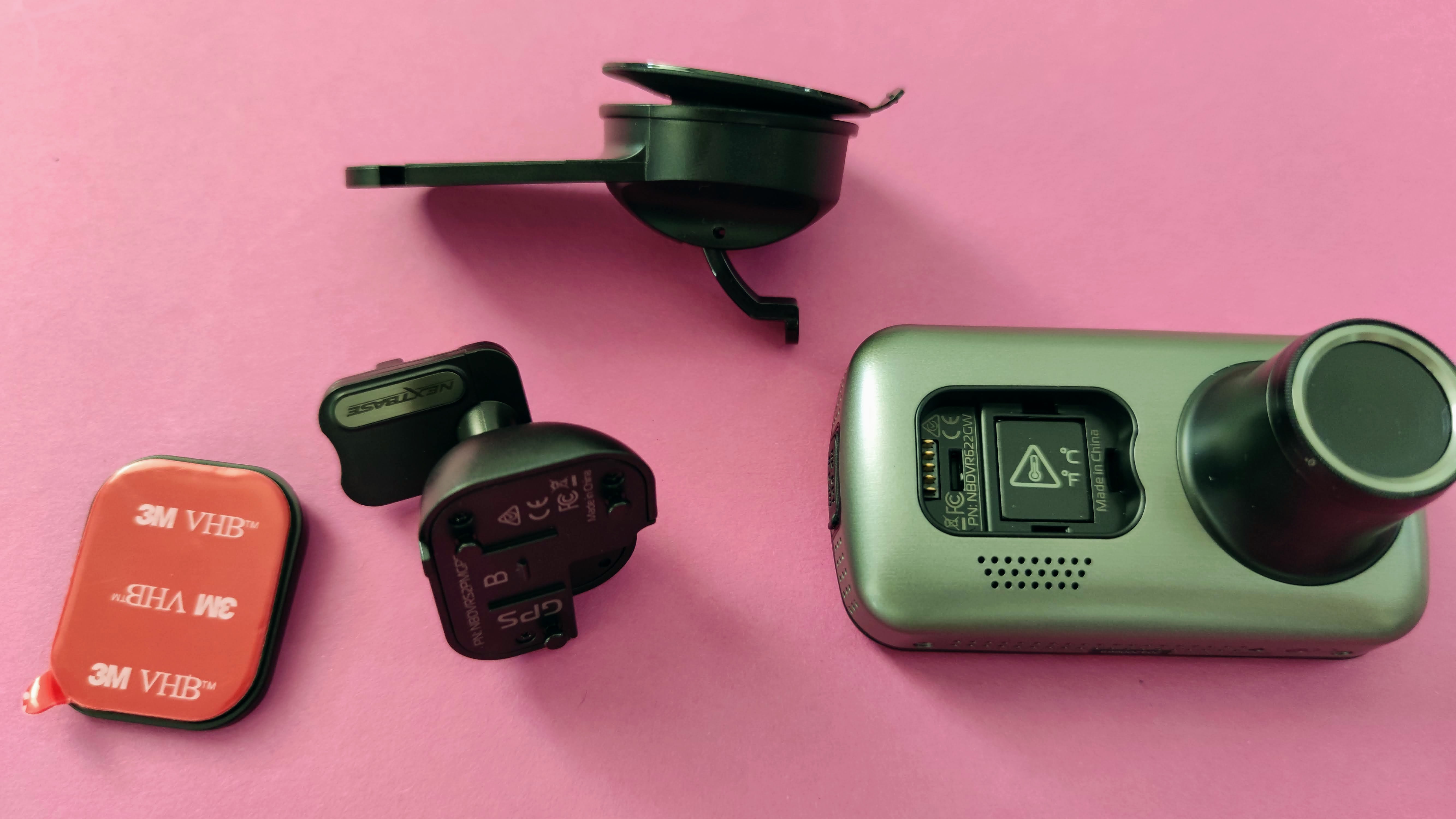 Solarzellen auf dem Gehäuse laden den Akku zusätzlich auf. Für den Ladevorgang dient ein USB-Kabel. Da man die Halterung für das Kennzeichen nur mit gewissem Aufwand abnehmen kann, empfehlen wir eine Powerbank. Gegen Regen ist die Kamera nach IP65 geschützt. Der 4,3-Zoll-Bildschirm kommuniziert mit der Kamera über 2,4 GHz. Im Cockpit befestigt man die Anzeige mit einem Saugnapf und versorgt diese über den 12-Volt-Anschluss mit Strom.