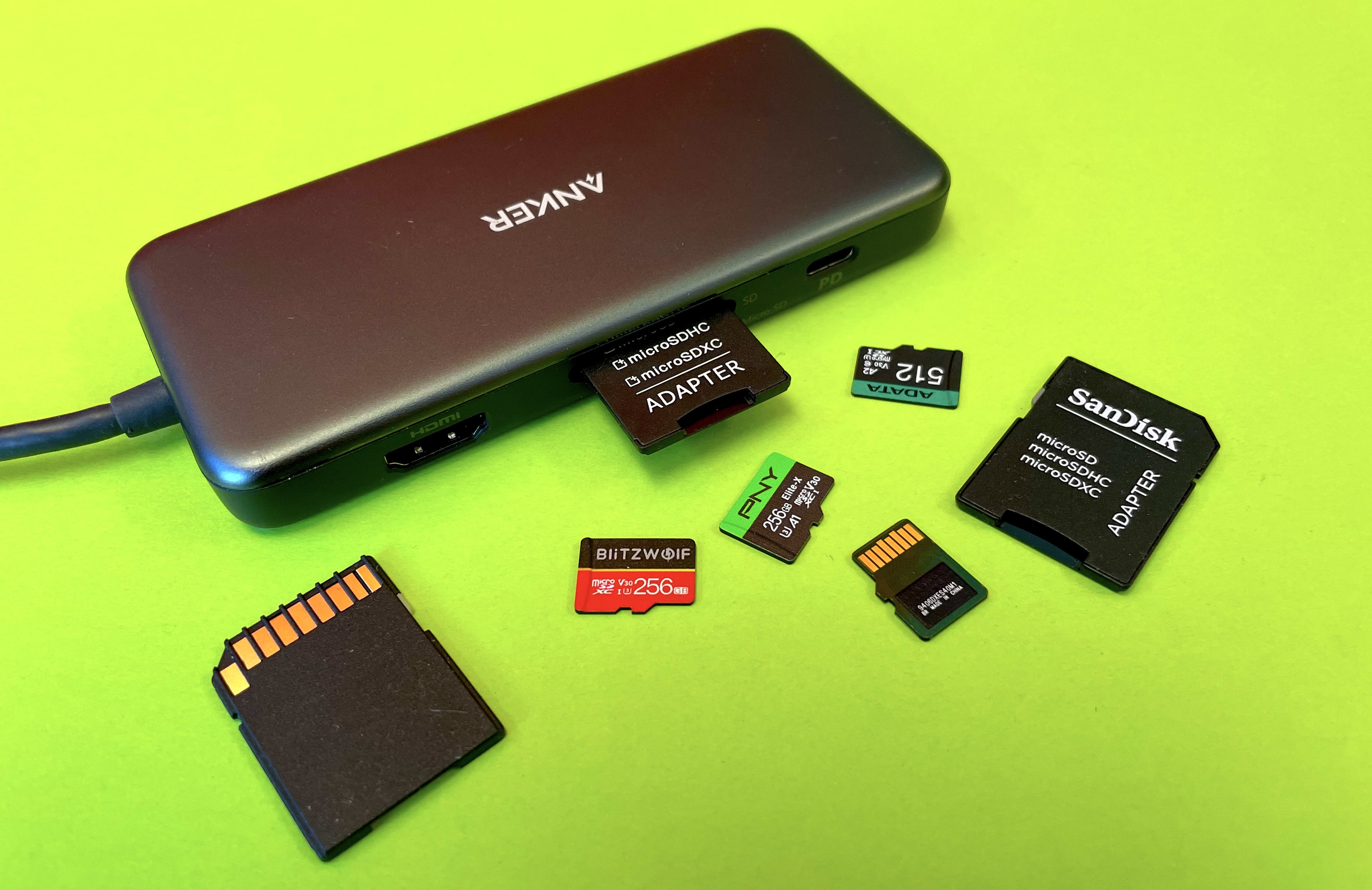 Nicht jeder Laptop oder PC bietet aber Ports für SD-Karten. Während man sich mit Adapterkarten von microSD auf SD helfen kann, gibt es auch Hilfe, wenn gar kein SD-Kartenslot vorhanden ist. Hier kommen nämlich USB-Sticks mit entsprechendem Einschubfach ins Spiel, wie das Hama microSD/microSDHC/microSDXC Adapter Set für 10 Euro (inklusive 3 Euro Versand).