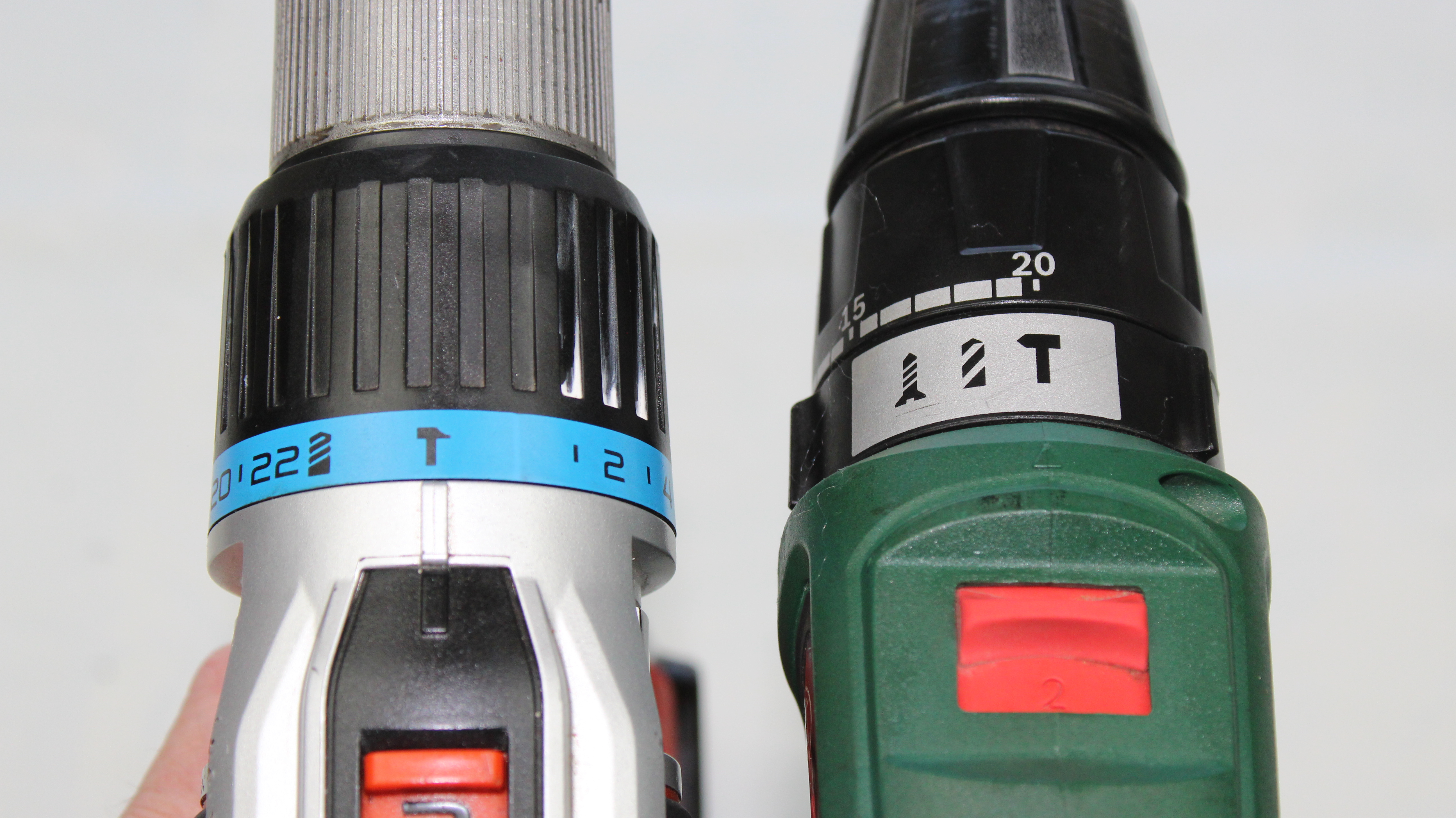Einer der unserer Meinung nach handlichsten und komfortabelsten Akku-Bohrschrauber ist der Bosch PSB 18 Li-2. Praktisch ist die getrennte Umschaltung der Drehmomentstufen und der Auswahl zwischen Schrauben, Bohren und Schlagbohren. So kann zwischen Bohren und Schrauben gewechselt werden, ohne die einmal eingestellte Drehmomentbegrenzung zu verstellen. Komfortabel ist auch die Drehrichtungsumschaltung, die nicht mit einem Knopf nach links und rechts erfolgt, sondern mit einem Hebel nach vorn und hinten.