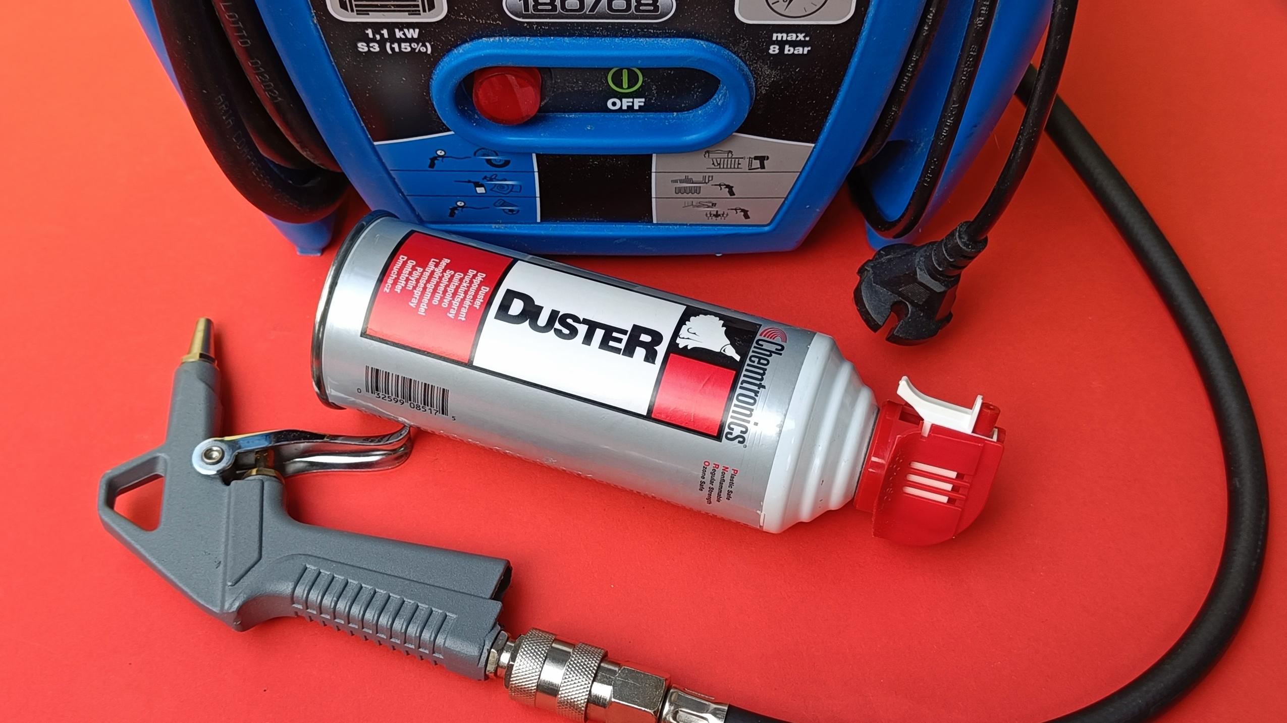 Zur Entfernung von Kabelresten oder Dreck vom Bohren und Schleifen eignet sich Druckluft. Bei seltener Nutzung tut es hier eine Dose Druckluftspray ab etwa 3 Euro. Diese Variante ist bei häufiger Anwendung allerdings deutlich zu teuer. Bei häufigem Gebrauch raten wir zum Kauf eines günstigen Kompressors für den Hobbybereich.
