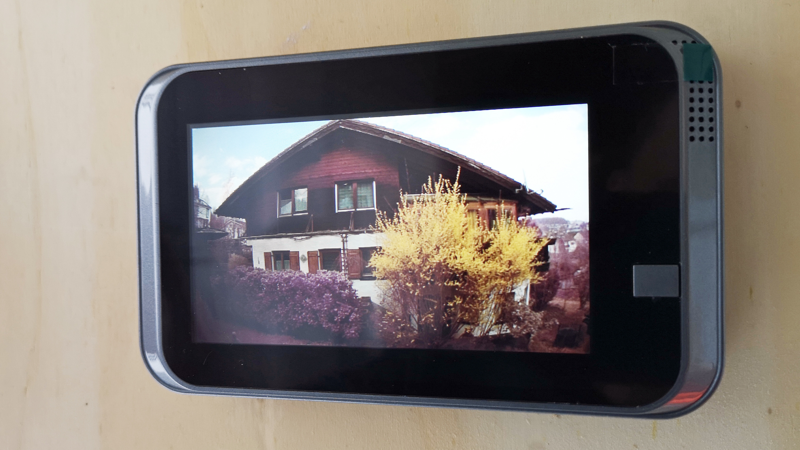 Wesentlich besser sieht es beim zweiten Test-Modell aus. Die Ezviz CP4 (Testbericht) mit 4,3 Zoll großen Display für die Innenseite bereitet weder bei der Einrichtung noch im Betrieb Probleme. Und Videos nimmt der in der Kamera integrierte CMOS-Sensor mit einer Auflösung von bis zu 1920 × 1080 Pixel und 15 Bildern pro Sekunde im datensparsamen HEVC-Format auf. Die Qualität der Aufnahmen entspricht den Erwartungen, die man an eine Überwachungskamera mit Full-HD-Auflösung knüpft. Sie sind detailreich und die Farbwiedergabe ist in der Grundeinstellung neutral. Für ein verbessertes Bild können Anwender WDR (Wide Dynamic Range) etwa bei Gegenlicht und die Verzerrungskorrektur aktivieren. Alternativ wird das Livebild auch auf dem großen Display an der Innenseite angezeigt.