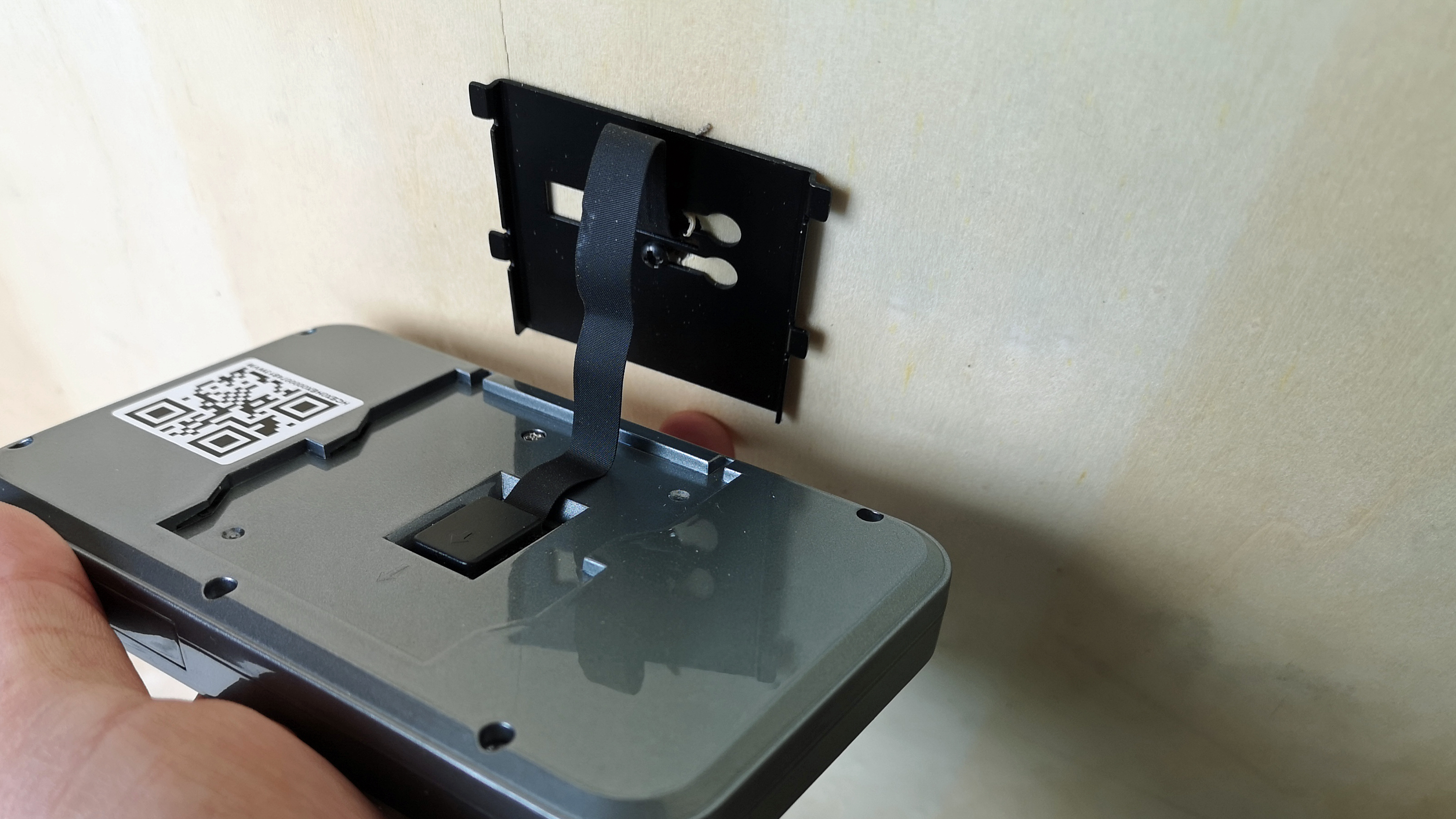 Als Letztes folgt das Einstecken des Kamerakabels auf der Monitorrückseite und das Einschieben des Bildschirms in die Halterung. Theoretisch ist der digitale Türspion nun einsatzbereit. Wer ein Modell mit WLAN-Funktion verwendet, sollte zudem die dazugehörige App installieren, um zusätzliche Funktionen der Kamera nutzen zu können.