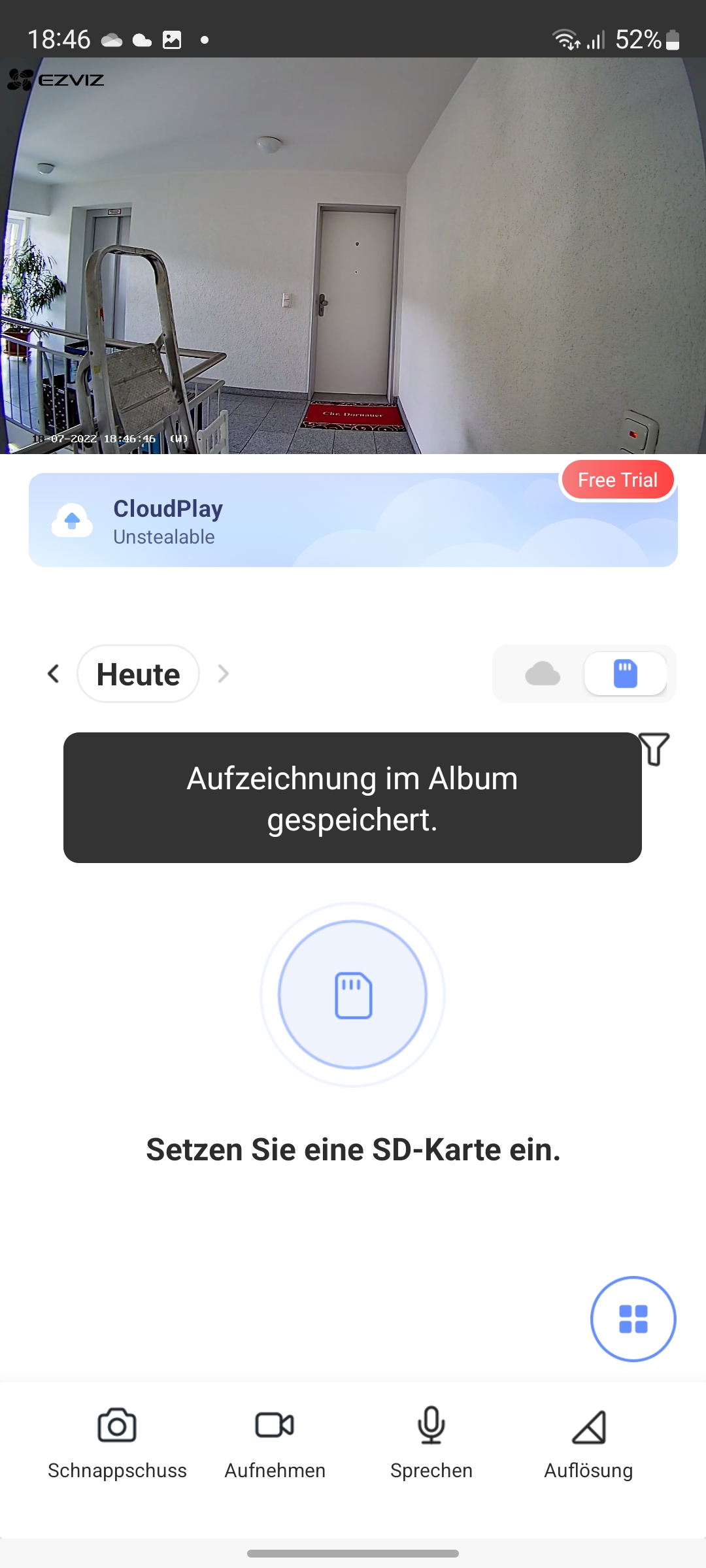 Für mehr Sicherheit erlauben smarte Türspione, Videos bei einer Bewegungserkennung nicht nur aufzunehmen, sondern auch abzuspeichern. Als Speichermedium setzen die meisten smarten Türspione dabei auf einen internen Speicher in Form einer microSD-Karte. Sie ist aber in der Regel nicht im Lieferumfang befindet.
