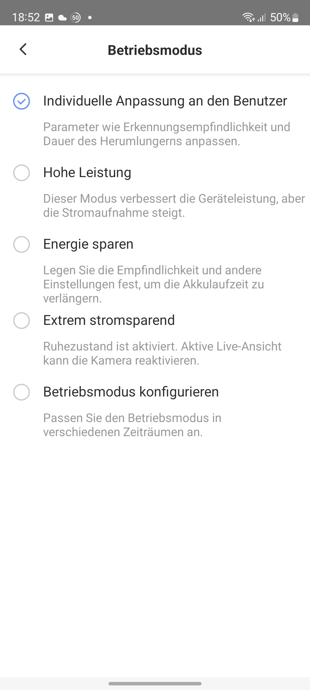 Die App bietet im Wesentlichen eine leichte Bedienung der Kamera: Die Videoauflösung kann verändert werden, was etwa bei einem schwachen WLAN-Signal von der App auch empfohlen wird. Anwender können Videoaufnahmen direkt im Livestream starten oder die Gegensprechfunktion nutzen.