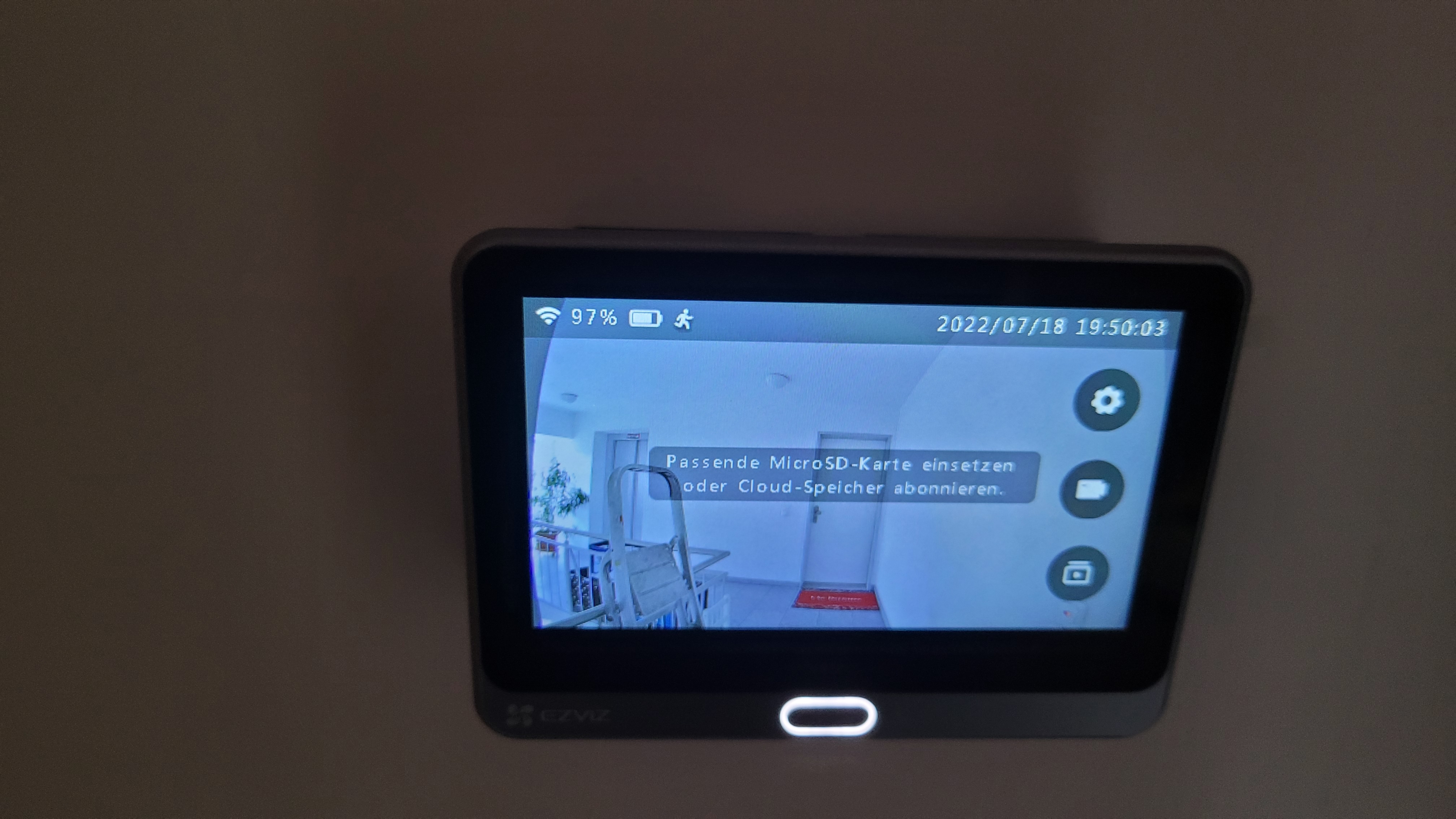 Die integrierte Klingel funktioniert. Nach Druck auf den Taster unterhalb der Kameraeinheit springt der Monitor für etwa 30 Sekunden an und spielt eine mehrsekündige Melodie ab. Der Klingelton ist für kleine Wohnungen ausreichend laut, für große Appartements oder Häuser aber zu leise. Ein echter Ersatz für die Türklingel ist die Lösung nicht. Zumindest, falls Kinder zu Besuch kommen. Denn die erreichen den Klingelknopf erst gar nicht.