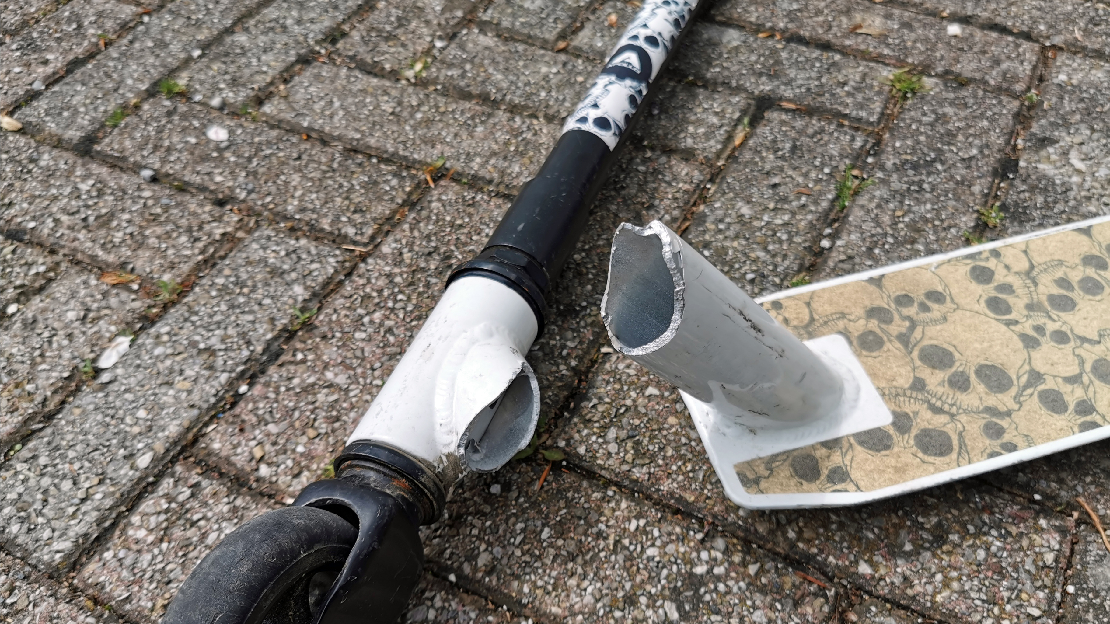 Aus unserer Sicht sollte man das Geld besser für einen hochwertigen klassischen Tretroller oder Stunt-Scooter ausgeben. Insbesondere bei häufiger Nutzung lohnt es sich hier mehr zu investieren. Billige Scooter ohne Antrieb sind zwar schon ab etwa 30 Euro erhältlich, die Verarbeitungsqualität ist aber bestenfalls für eine sporadische Nutzung ausreichend. Abgesehen von klappernden Anbauteilen wollen wir hier speziell die teils minderwertige Stabilität der Rahmen ansprechen. Die Lenkstange des privat genutzten Stunt-Scooters unseres Testpiloten (10 Jahre) ist erst kürzlich bei einem Bunny-Hop vom Bürgersteig gebrochen. Und das, obwohl der Scooter erst seit 18 Monaten im sporadischen Einsatz war und mit einem Preis von 100 Euro auch nicht zu den Billigheimern gehört. Die Recherche im Internet zeigt, dass das Problem beim Hersteller Apollo wohl häufiger auftritt. Zum Glück ist außer ein paar Schrammen wenig passiert – die scharfkantige Bruchstelle hätte auch zu ernsten Verletzungen führen können.