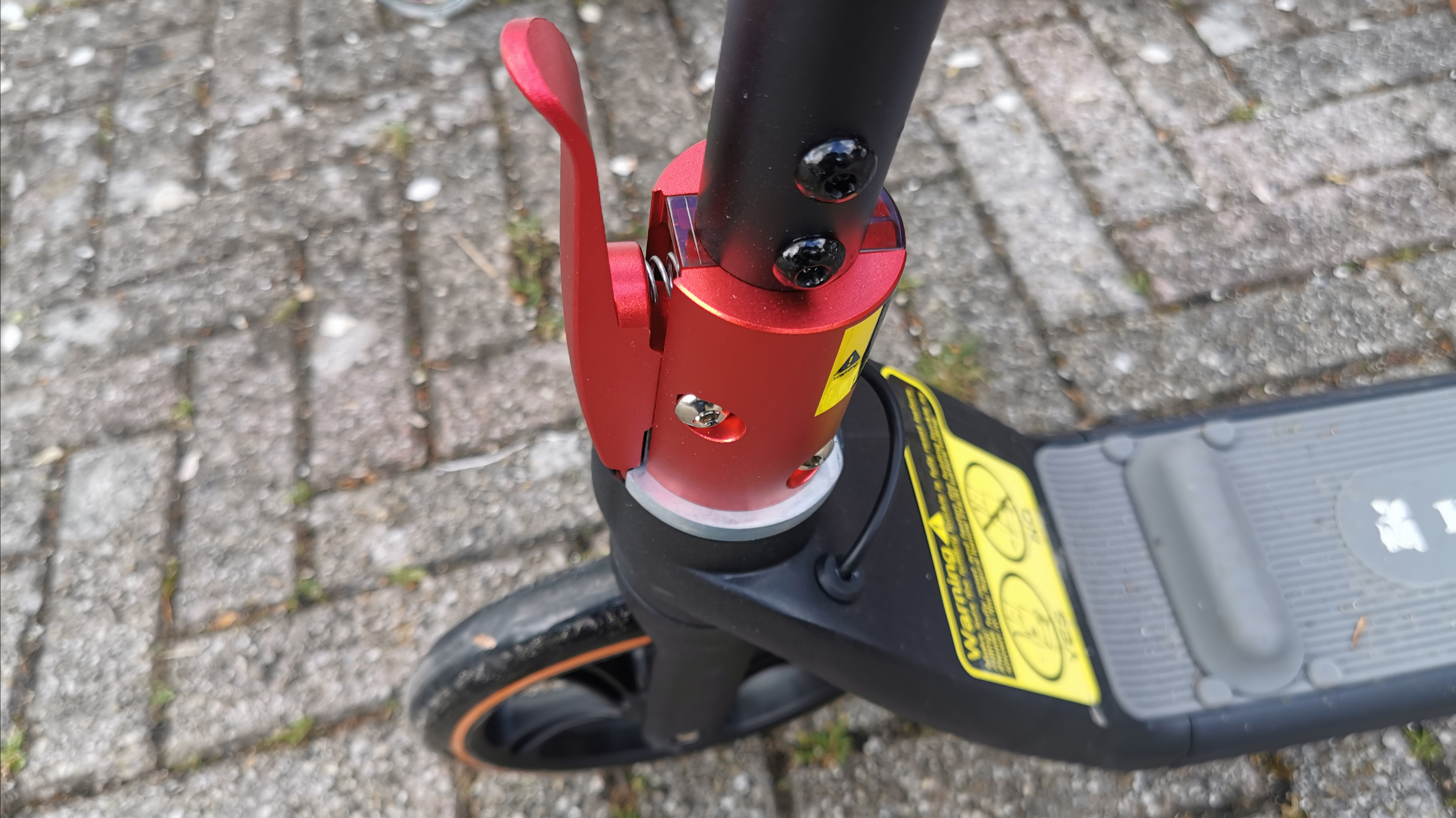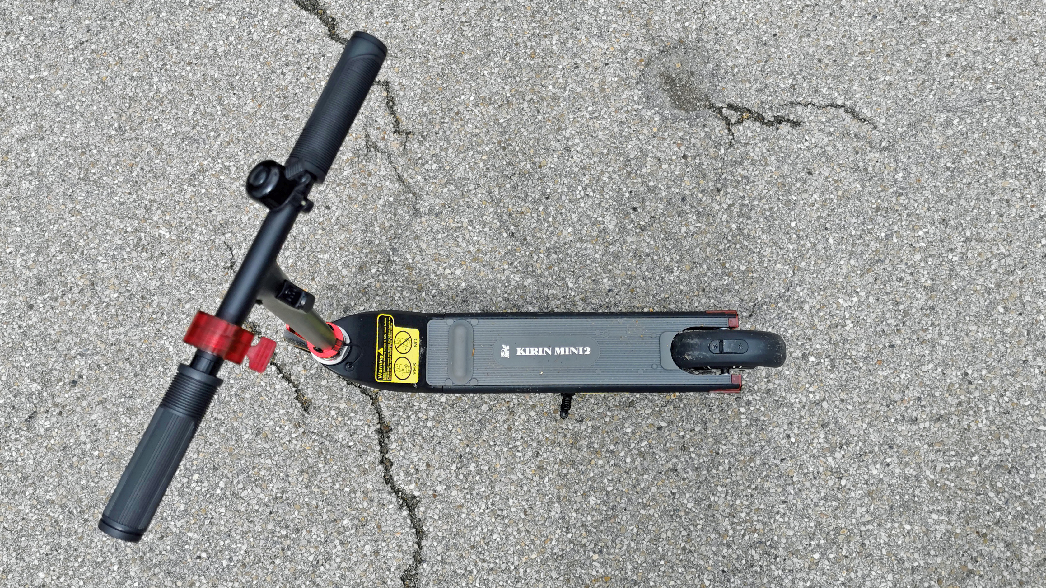 Der Klappmechanismus unseres Testgerätes funktioniert zuverlässig und hinterlässt einen stabilen und wertigen Eindruck. Zusammengeklappt passt der Kirin Mini 2 dann problemlos in die beigepackte Schultertasche. Insgesamt ist die Verarbeitung des Kugoo Scooters überraschend hochwertig. Trotz des Preises von unter 200 Euro wirkt hier alles stimmig und ordentlich durchdacht.