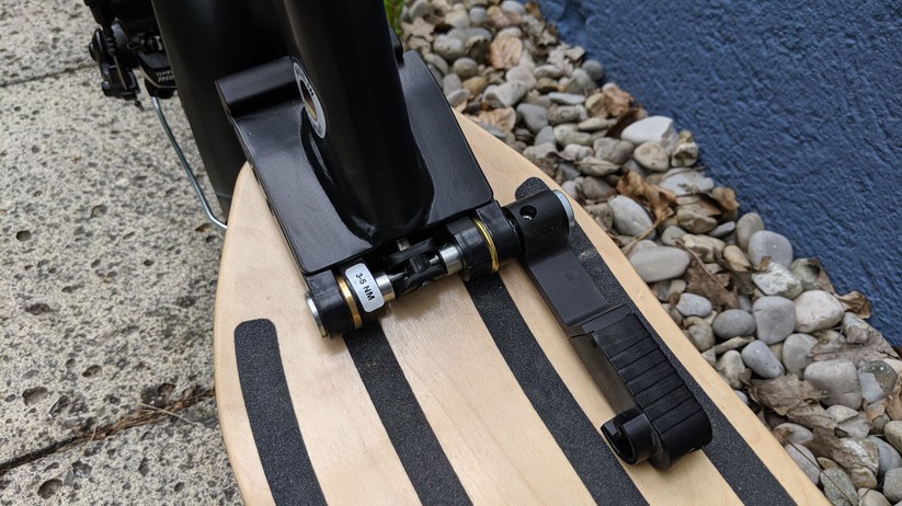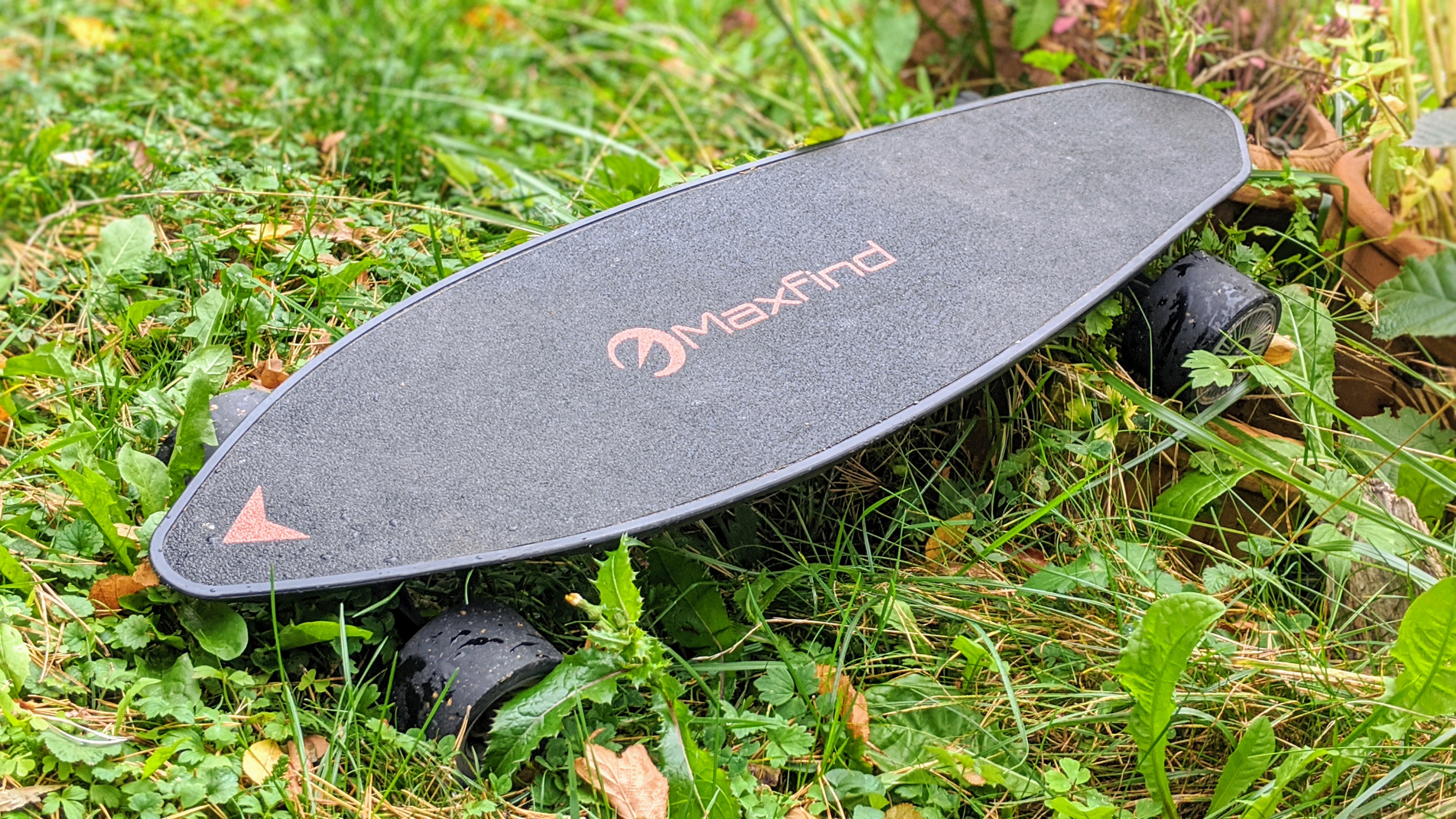 Als E-Skateboard nutzt er das etwa 500 Euro teure chinesische Maxfind Max 2 . Der Hersteller verspricht durch zwei bürstenlosen 500-W-Motoren eine Höchstgeschwindigkeit von bis zu 36 km/h, dank 4400-mAh-Akku eine Reichweite von bis zu 25 km Reichweite, eine maximale Traglast von 120 kg bei nur 6,6 kg Eigengewicht.