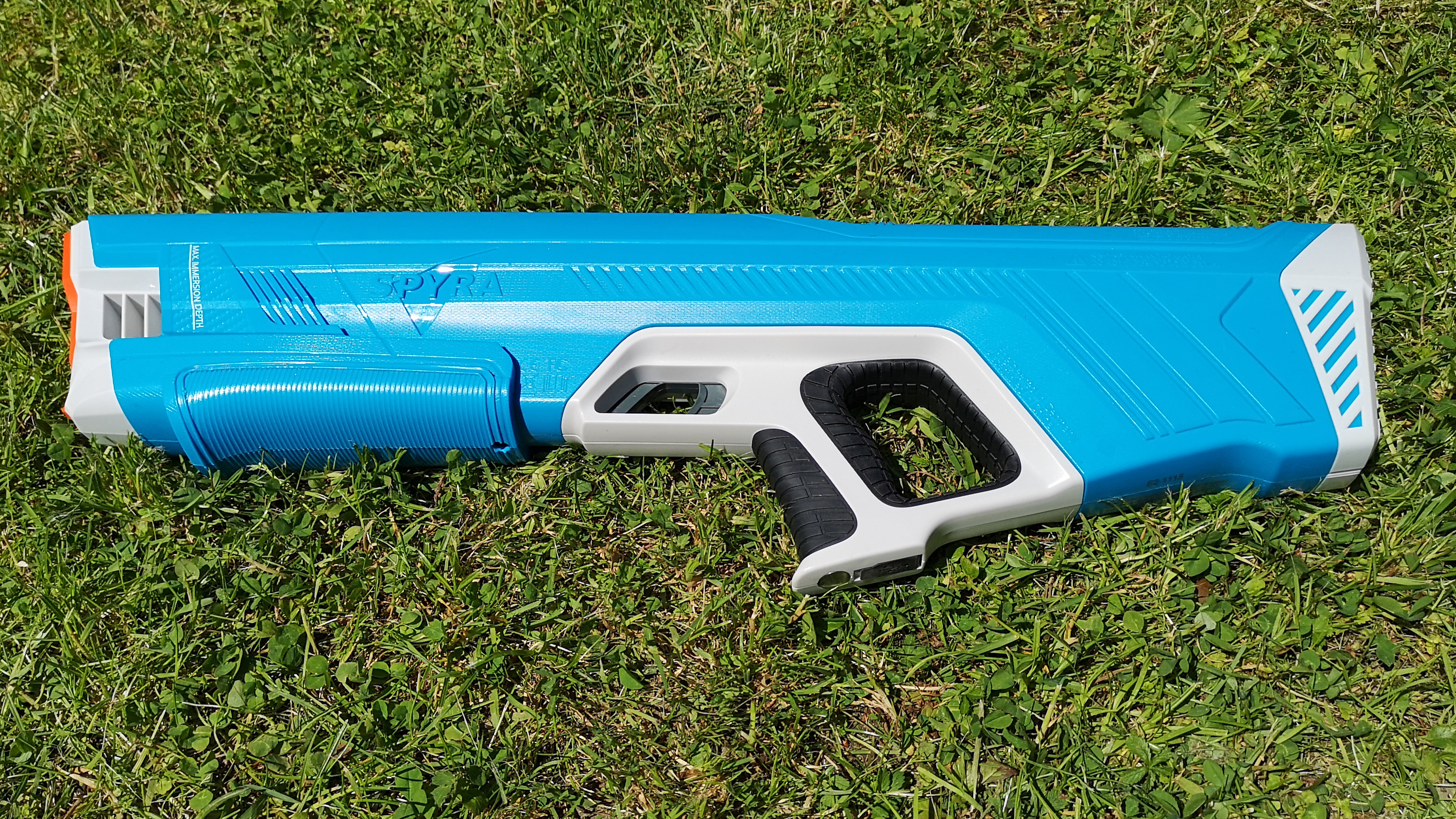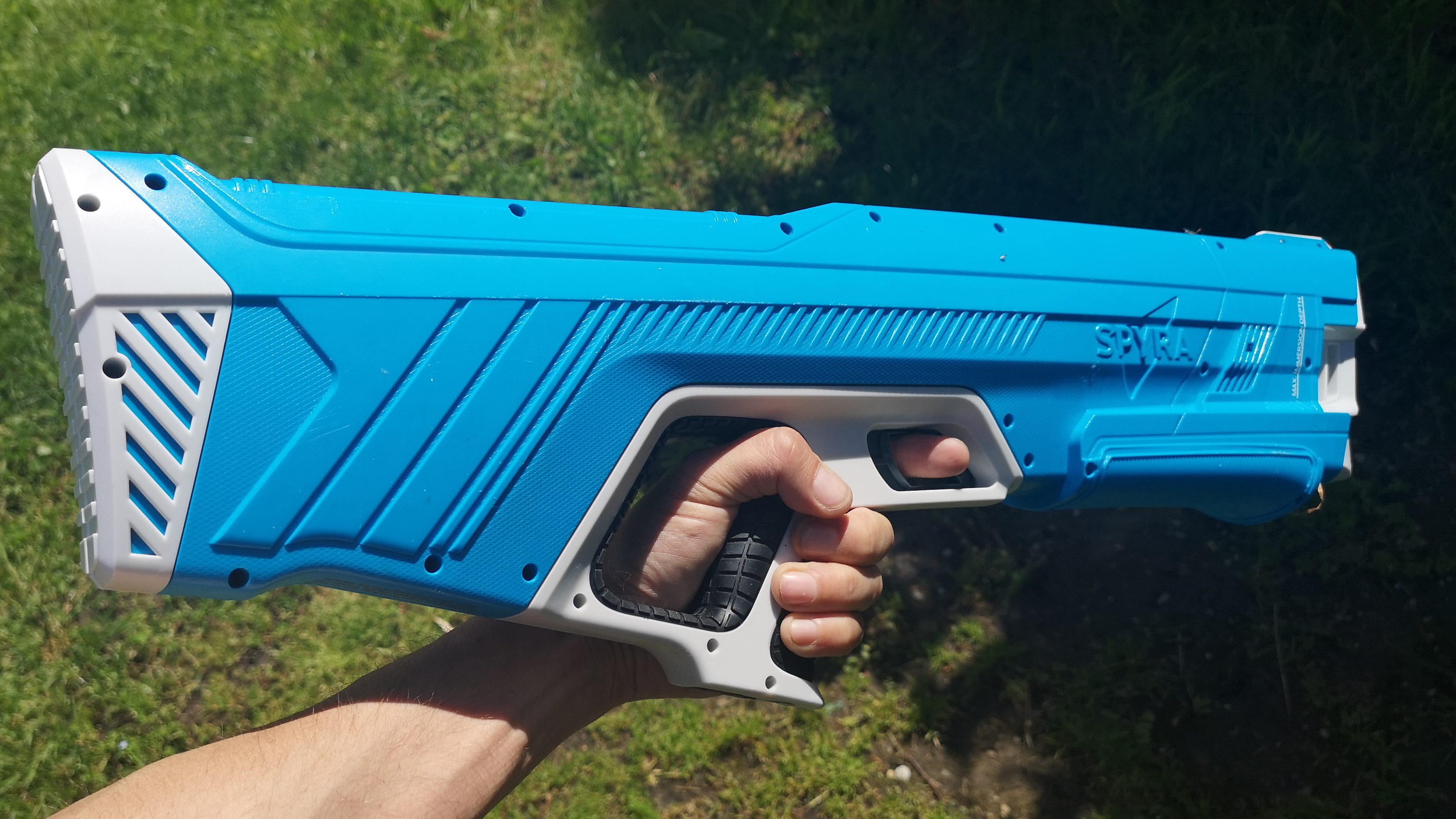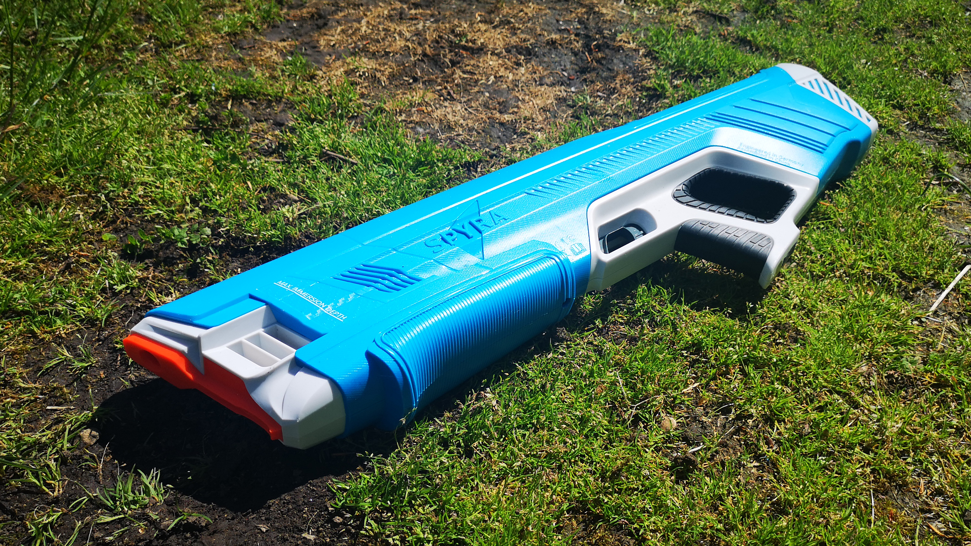 Unsere hochpreisige High-End-Variante im Testfeld ist die Spyra Two mit schicker LCD-Anzeige und einem Preis von über 100 Euro. Die nach Herstellerangaben stärkste Wasserpistole der Welt wird in Deutschland entwickelt und im Laufe des Sommers 2021 verfügbar sein – Vorbestellungen sind aber jetzt bereits möglich. Vom Vorgängermodell Spyra One sind nur noch Restbestände lieferbar.