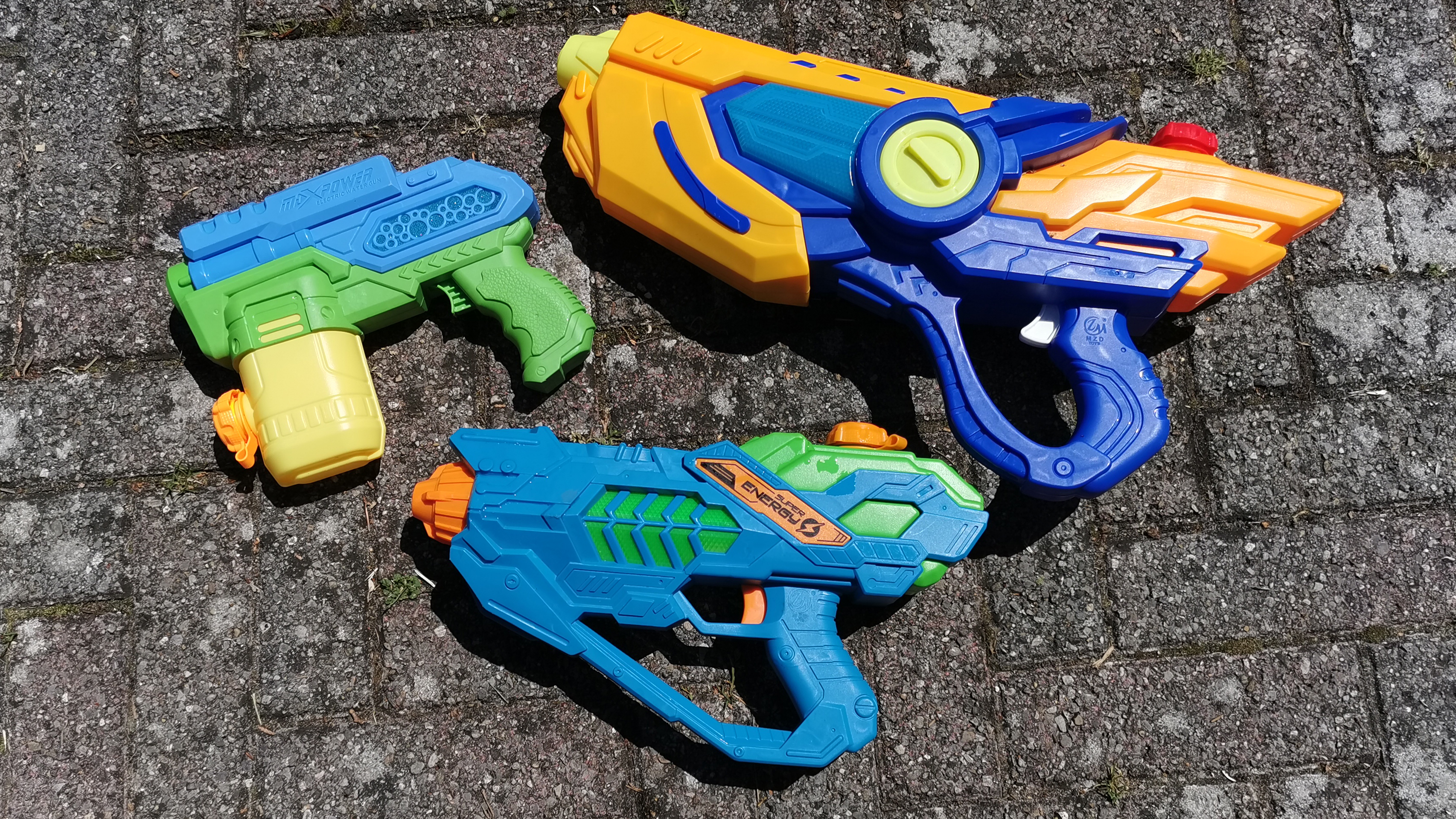 Für unseren Ratgeber haben wir uns elektrische Wasserpistolen verschiedener Preisklassen bestellt. Am günstigsten sind die unter verschiedenen Namen gelisteten Low-Budget-Modelle wie die Aoluxlm Wasserpistole für 14 Euro oder der Wasserblaster Cestmall für 18 Euro. Der im Praxistest verwendete Mini-Blaster von Anpro für 10 Euro ist derzeit leider nicht mehr auf Amazon verfügbar.