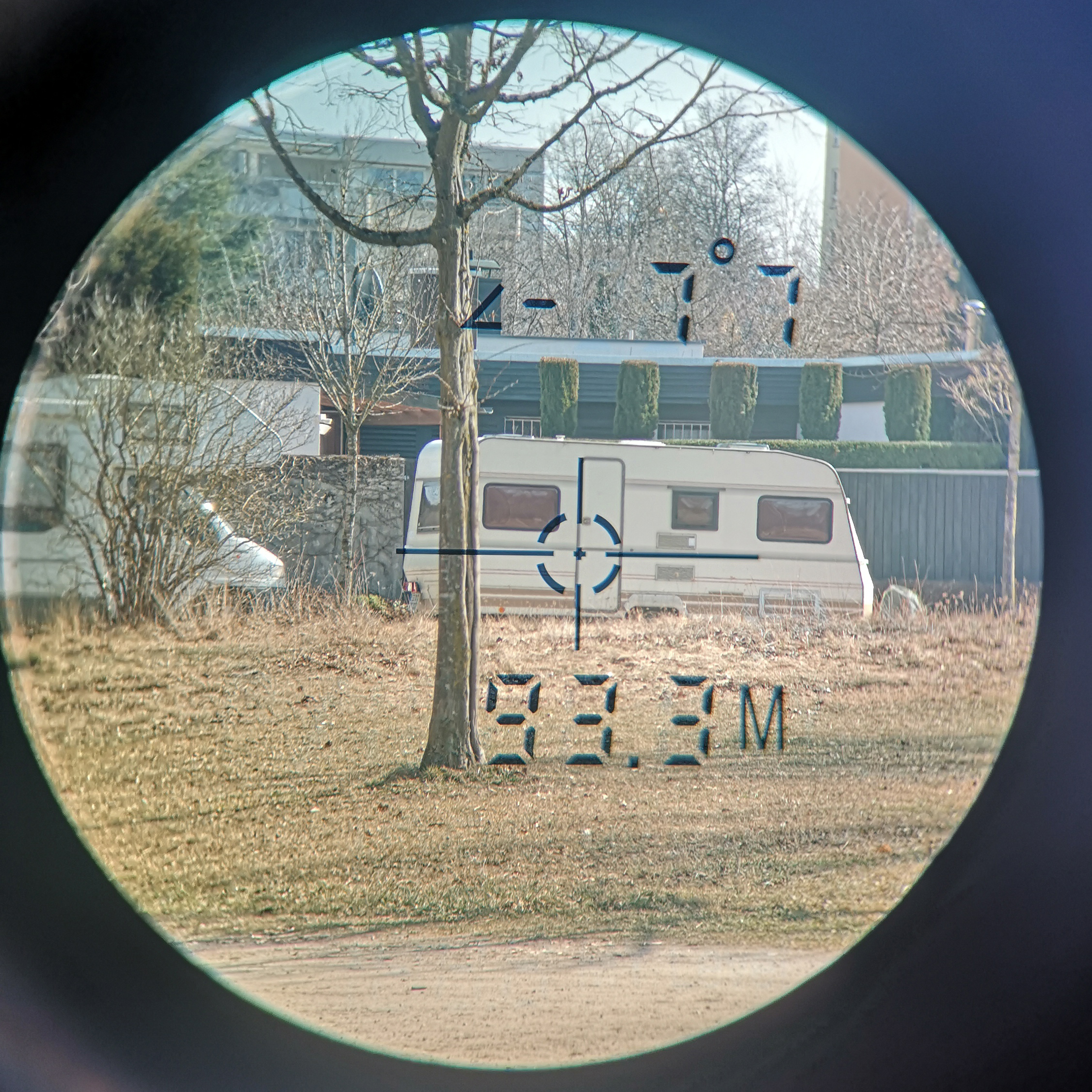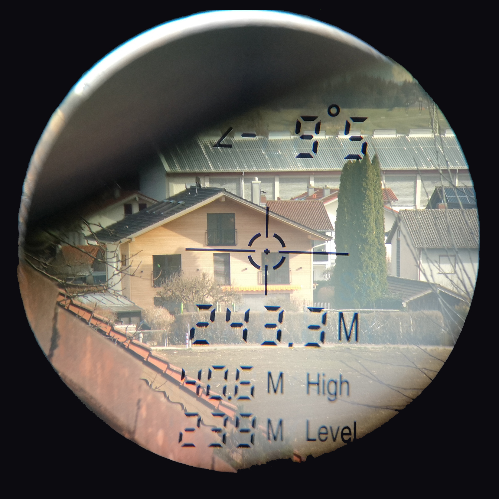 Nach dem Auslösen einer Messung werden im Standardmodus die Entfernung und der Winkel zwischen Objekt und Fernglas im Sichtfeld eingeblendet. In Bezug auf die Entfernungsmessung machen hier beide Geräte einen exzellenten Job und zeigen bis auf eine maximale Differenz von plus/minus einen Meter dasselbe Ergebnis. GPS-Messungen der Entfernung bestätigen die Messwerte zumindest annähernd. Ganz exakt können wir die Ergebnisse zwar nicht überprüfen, aber sie scheinen bis auf minimale Abweichungen zu stimmen. Probleme gibt es bei beiden Geräten, wenn wir etwa gewinkelte Dächer anvisieren. Insgesamt stellt sich das Messen kleiner Objekte in großer Entfernung trotz sechsfacher Vergrößerung als kniffelig heraus. Ohne Stativ und optische Stabilisierung ist jede kleine Handbewegung sofort sichtbar und erschwert so das Anpeilen. Größere Objekte lassen sich hingegen problemlos anvisieren. Diese sollten allerdings über einigermaßen gerade Oberfläche verfügen. Wer etwa einen Baum anpeilt, muss sonst immer mit leicht abweichenden Messergebnissen rechnen.