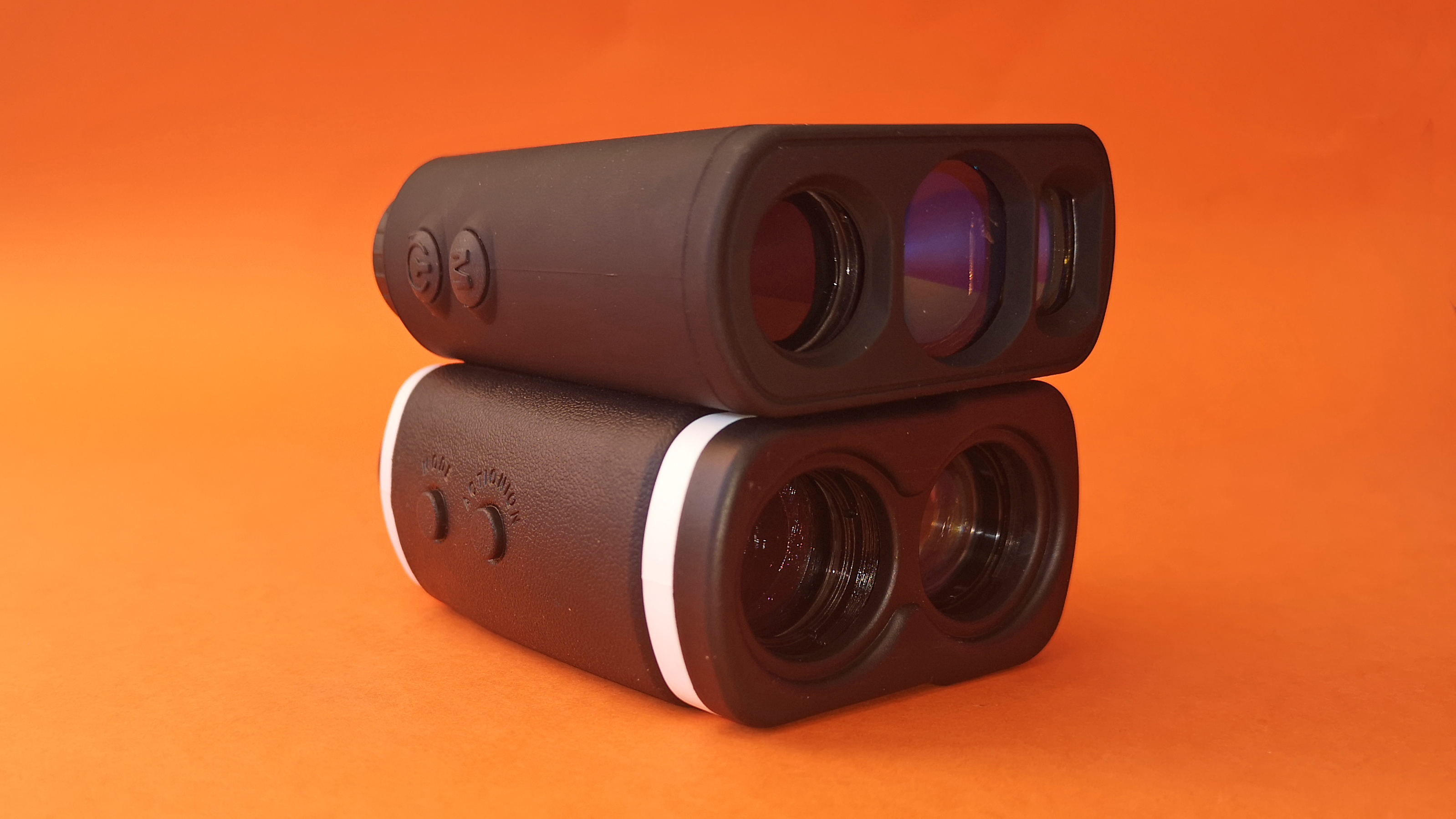 Die Bedienung beider Geräte funktioniert annähernd gleich. Ein langer Druck auf Action- oder Power-Schalter startet die Messtechnik und das On-Screen-Display in schwarzer Schrift erscheint. Ein kurzer Druck startet die Messung, die Mode-Taste wechselt den Messmodus. Nach dem Einschalten ist bei beiden Ferngläsern die Entfernungsmessung aktiv. Hier ist die Bedienung intuitiv. Per Sucher wird ein Objekt angepeilt, das funktioniert mithilfe eines mittig eingeblendeten Fadenkreuzes. Bei Nichtbenutzung gehen die getesteten Entfernungsmesser nach 30 bis 60 Sekunden automatisch aus.