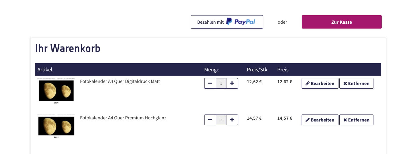 Zwischen 4 und 6 Euro kostet der Versand bei Online-Fotodiensten. Wer via Cewe bei den Drogeriemärkten dm oder Rossmann bestellt, kann die Kalender aber auch versandkostenfrei in der nächsten Filiale abholen.