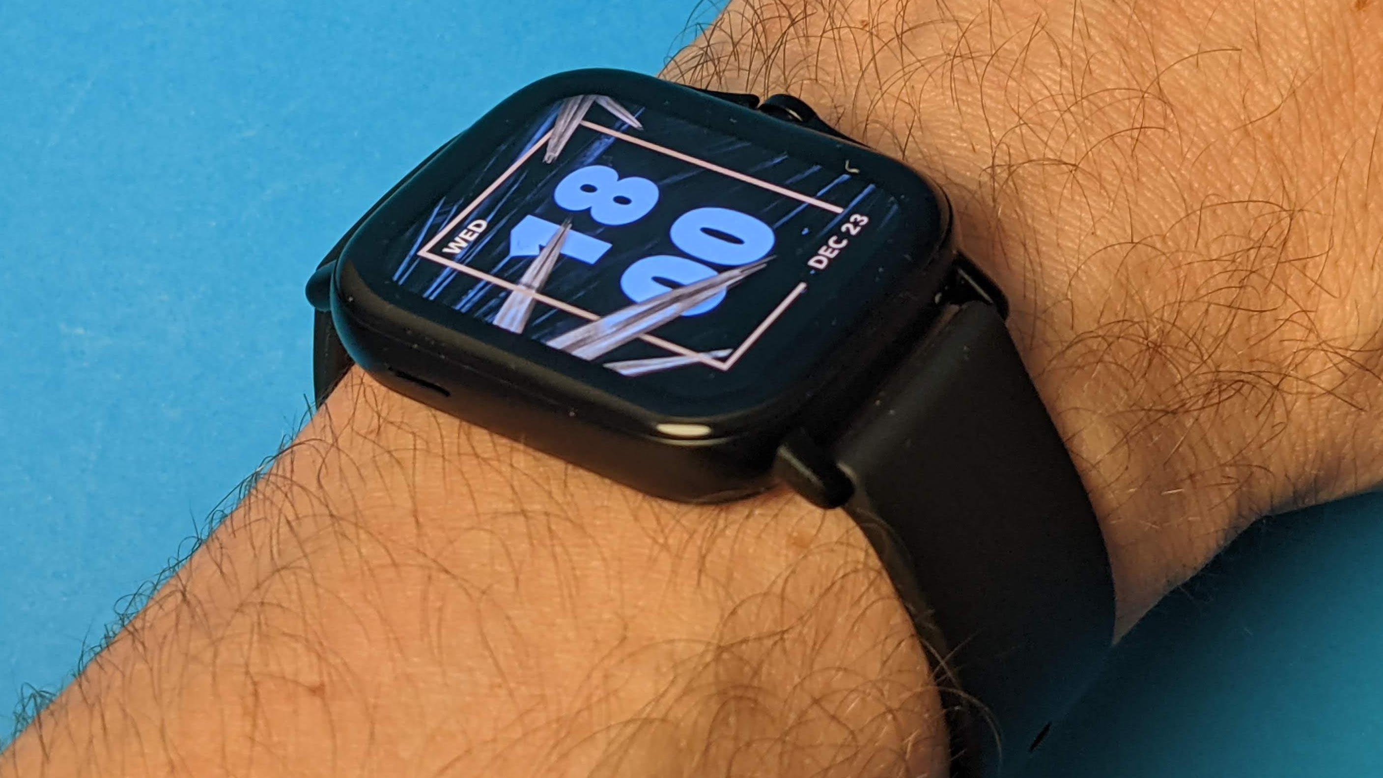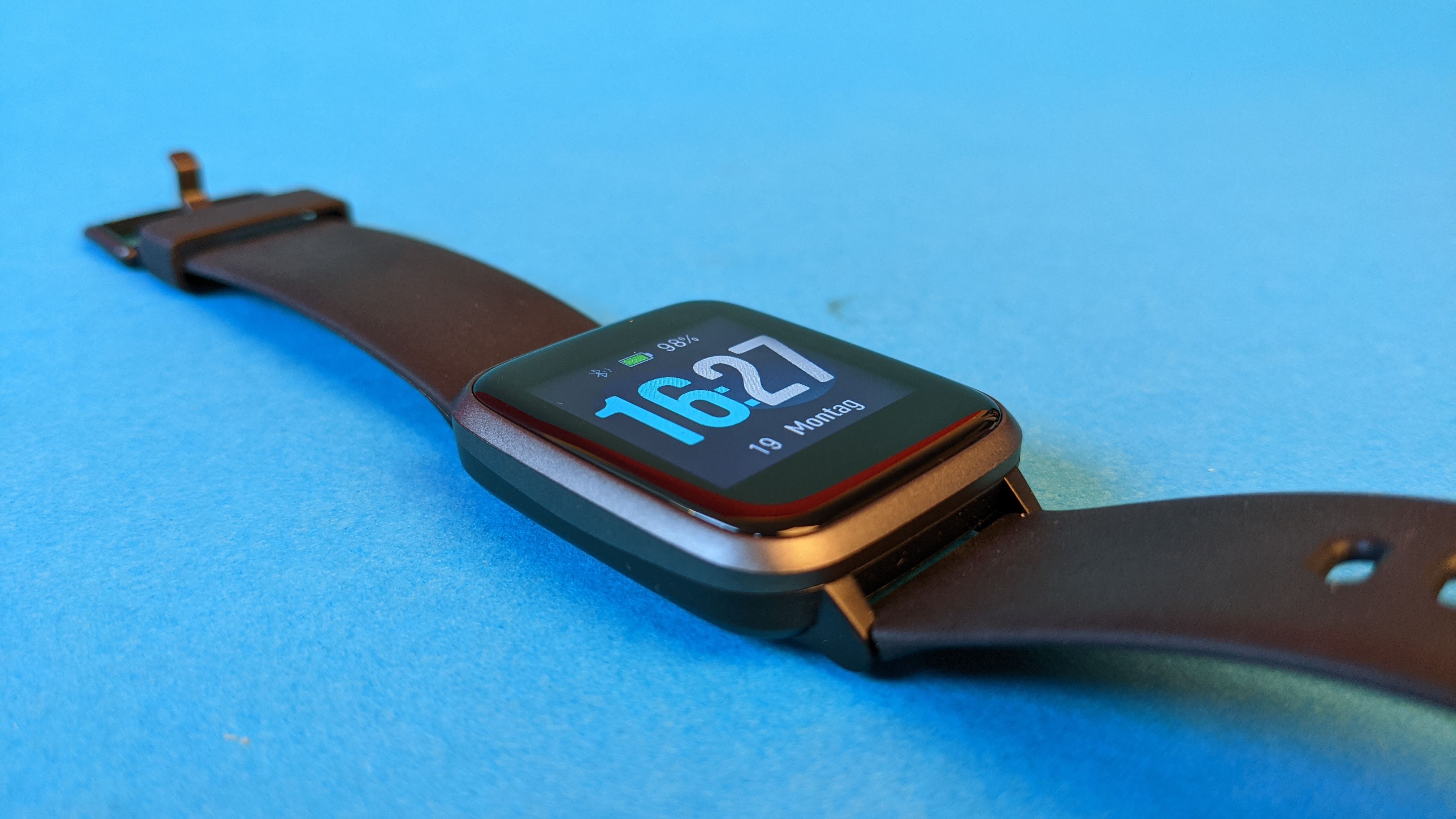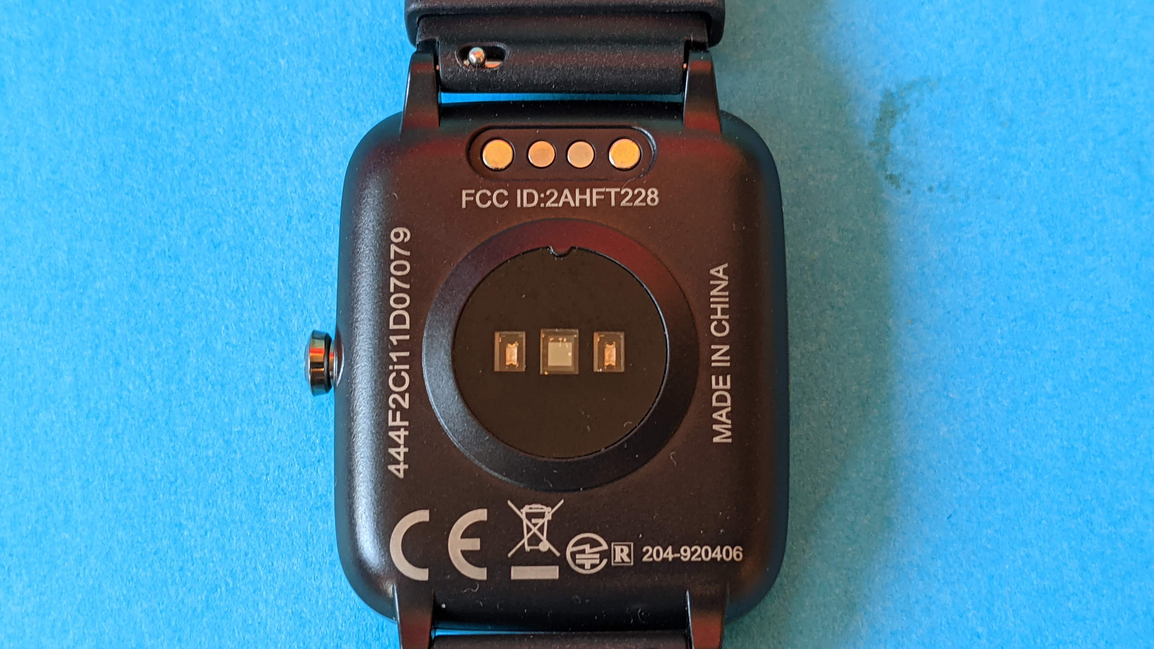 Optisch ähnelt sie der Apple Watch. Sie ist 12 Millimeter dick, 35 Millimeter breit und 41 Millimeter lang. Ihr 1,3-Zoll-Display ist mit 240 × 240 Pixel recht scharf, ausreichend hell und bietet brauchbare Blickwinkel. Allerdings ist der Display-Rand besonders an der unteren Seite deutlich zu dick. Bemerkenswert: Trotz ihres günstigen Preises bietet sie eine IP68-Zertifizierung. Mit ihr sollte man entsprechend bedenkenlos schwimmen können. Salzwasser sollte man meiden.