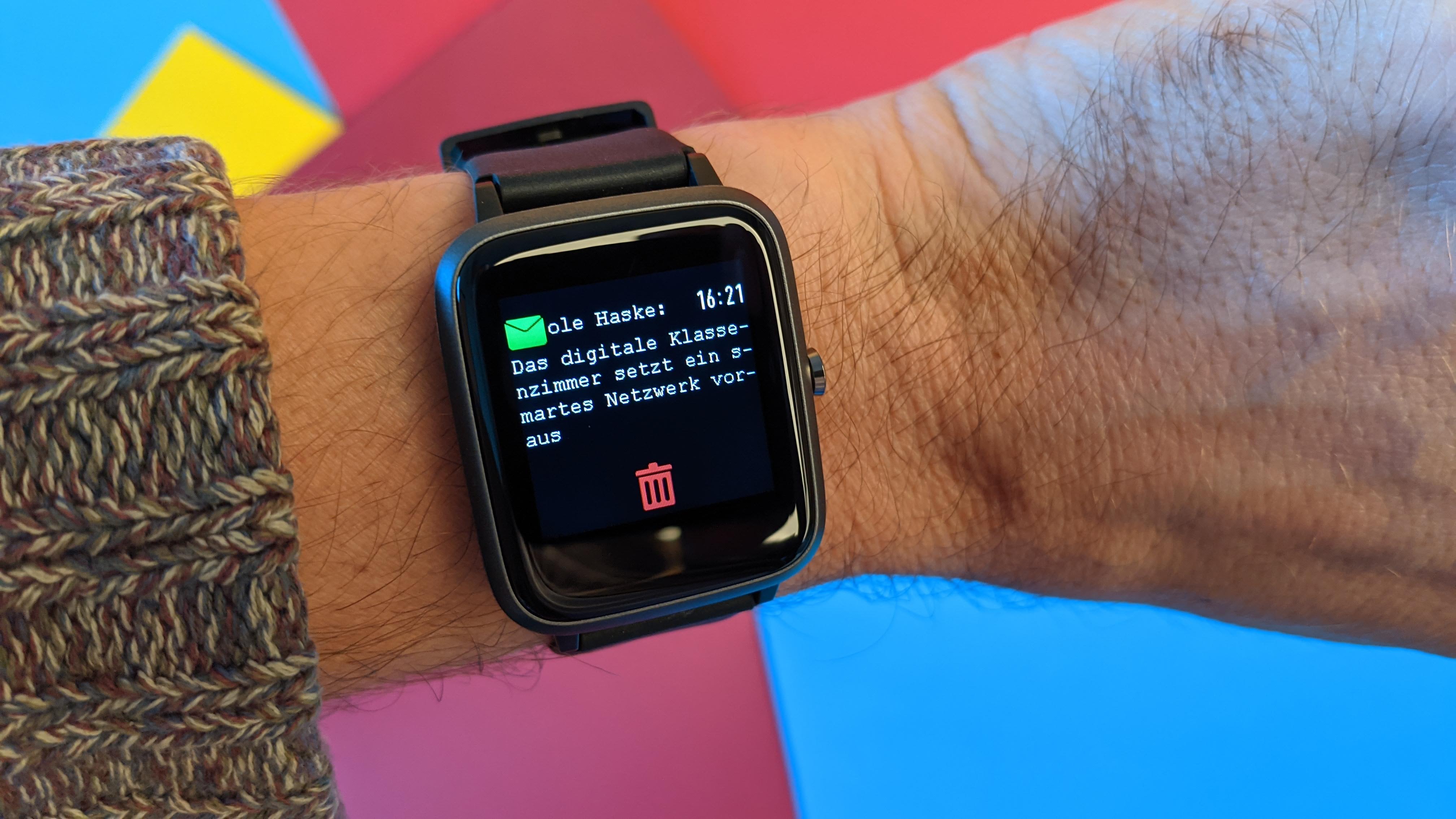 Das Preis-Leitung-Verhältnis ist überzeugend, die Verarbeitung ebenfalls. Lediglich das Armband wirkt etwas billig. Sportler können sich über zahlreiche kostenlose Sport-Programme freuen, die Pulsmessung ist aber bei stark wechselnder Herzfrequenz teils ungenau. Die App verlangt relativ viele Berechtigungen für den vollen Funktionsumfang. Derzeit bekommt man die Smartwatch reduziert bei Amazon für 70 Euro.