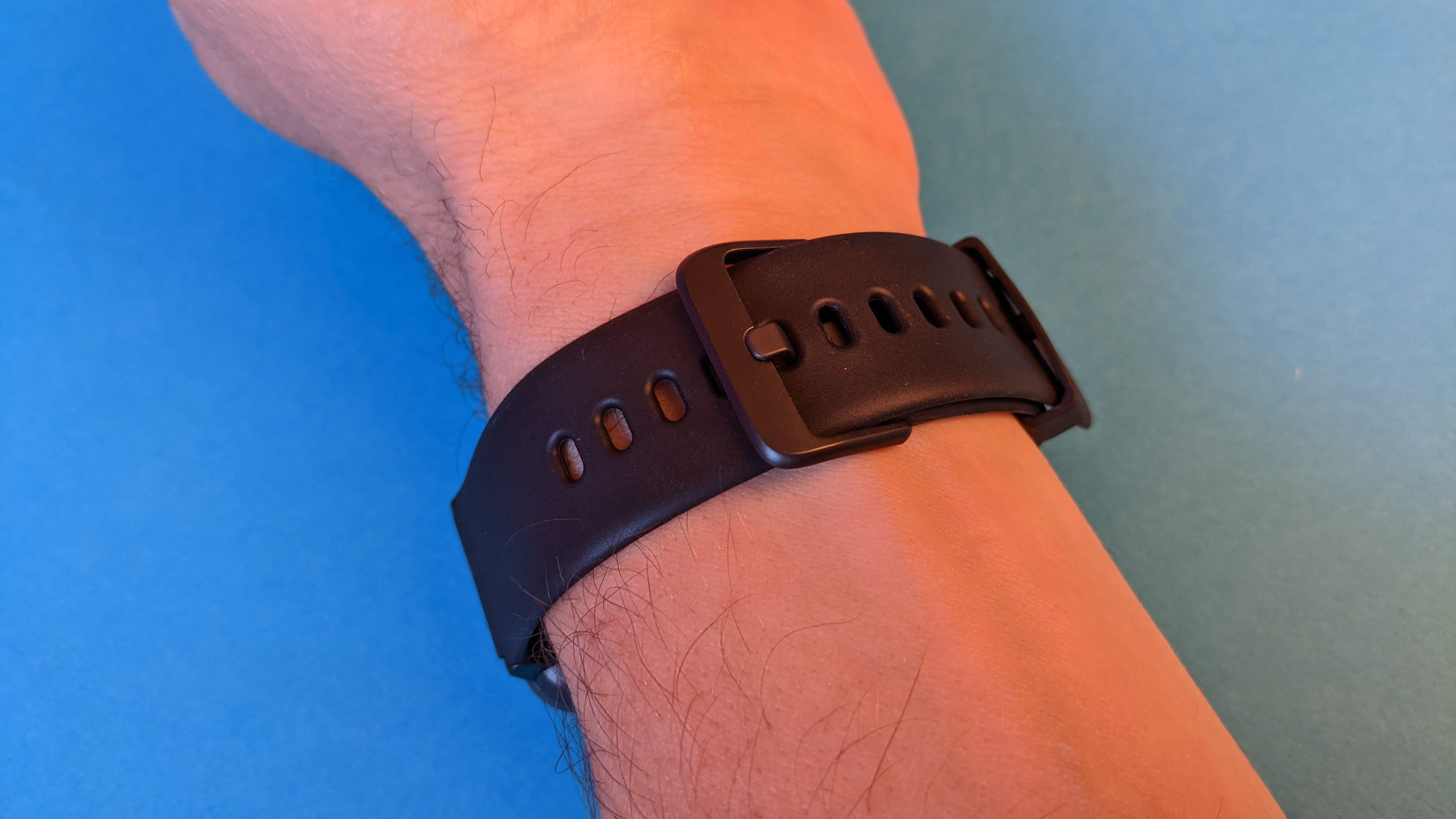 Das Armband bietet einen Schnellverschluss, um es mit einem Handgriff zu tauschen. Es besteht aus einem weichen Kunststoff und fühlt sich auf der Haut gut an. Der Akku soll laut dem Verkäufer Yonmig sieben bis zehn Tage durchhalten. In der Praxis kommen wir immerhin auf gute fünf Tage. Geladen wird sie über den mitgelieferten Ladeadapter.