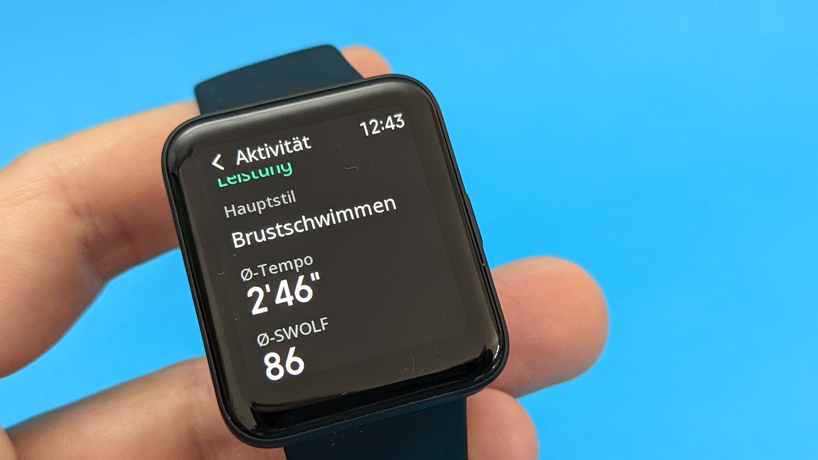 Im Test erkennt die Uhr selbstständig, dass wir Brustschwimmen. Auch das Tracking via GPS funktioniert selbst im Wasser noch ausreichend gut. Das Display sperrt sich im Wasser, um versehentliche Eingaben zu vermeiden. Nach dem Training zeigt die App weitere Details. Auch die Benachrichtigungen funktionieren zuverlässig. Die Herzfrequenzmessung soll gegenüber dem Vorgänger verbessert worden sein. Auf NFC, Lautsprecher und Mikrofon müssen Käufer jedoch verzichten. So ist es nicht möglich, über die Uhr zu telefonieren.